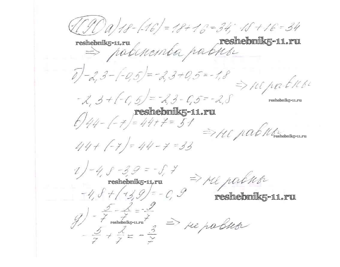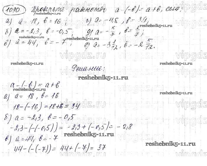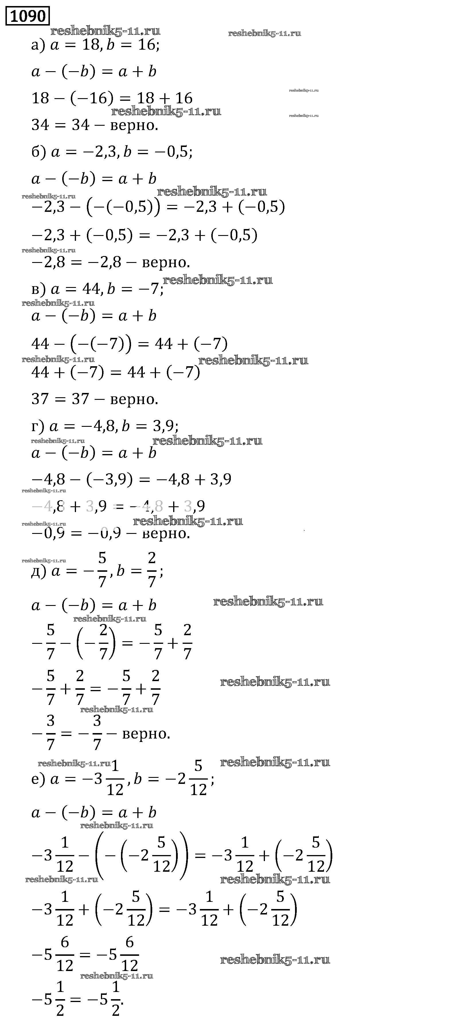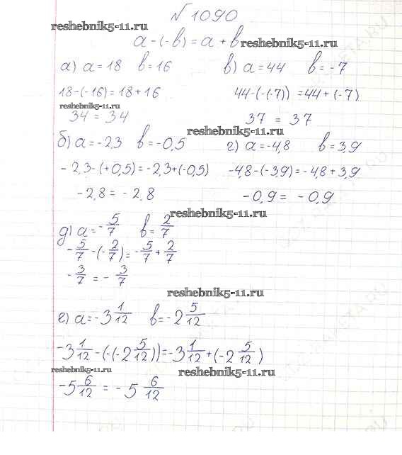 Готовая домашняя работа с ответами по Математике за 6 класс Виленкин, Жохов, Чесноков, Шварцбурд Учебник Мнемозина 2014 ФГОС - §6. Сложение и вычитание положительных и отрицательных чисел 1090