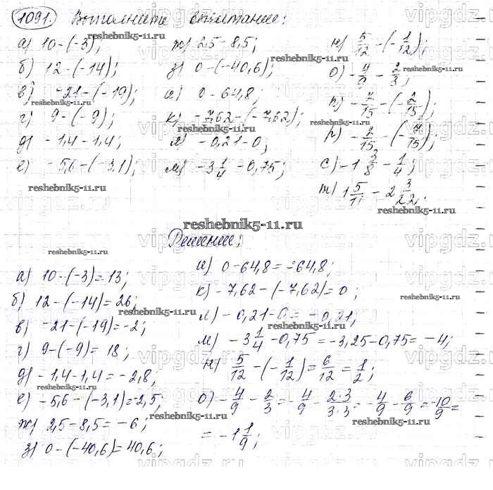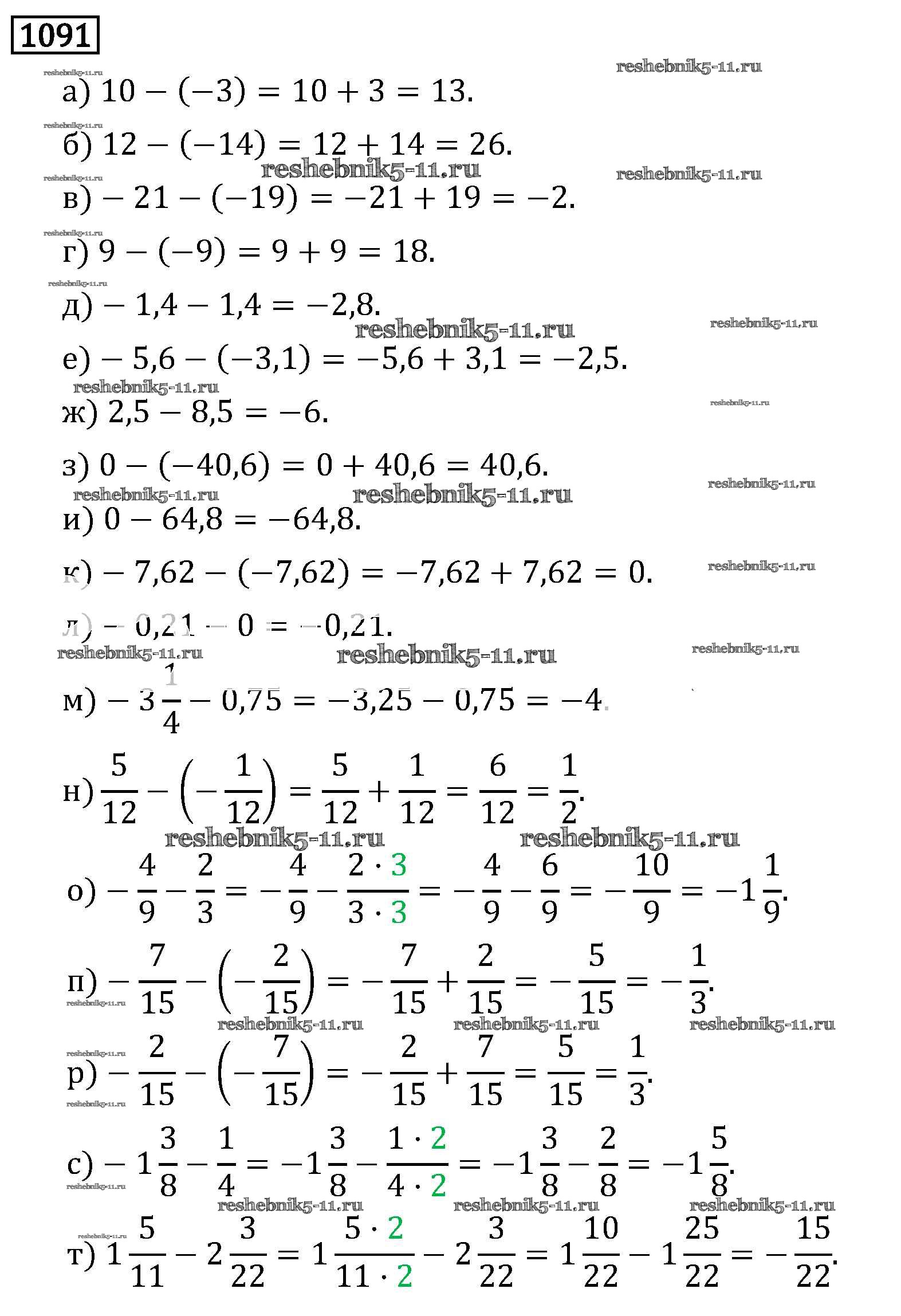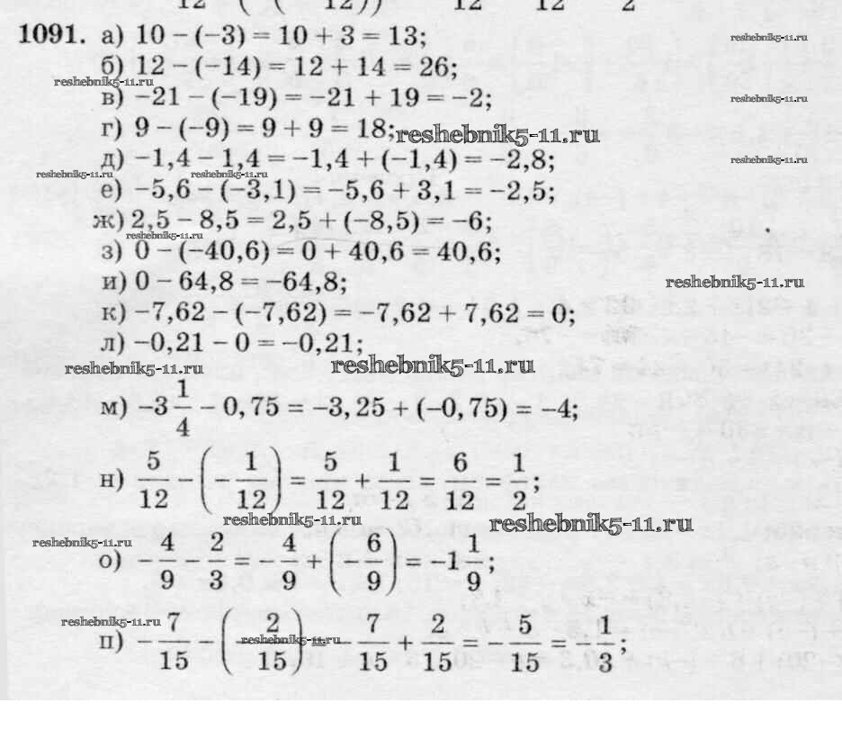 Готовая домашняя работа с ответами по Математике за 6 класс Виленкин, Жохов, Чесноков, Шварцбурд Учебник Мнемозина 2014 ФГОС - §6. Сложение и вычитание положительных и отрицательных чисел 1091