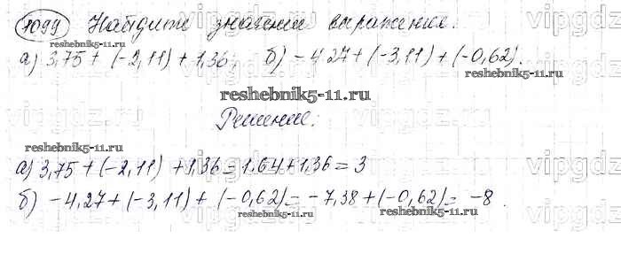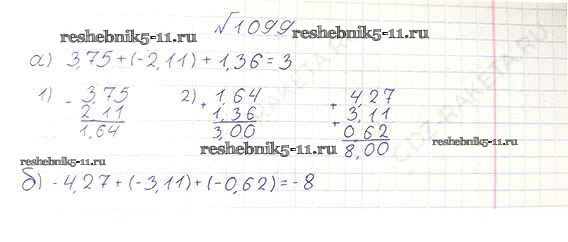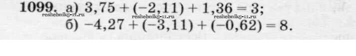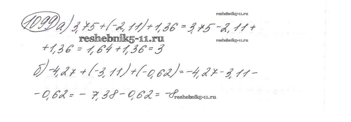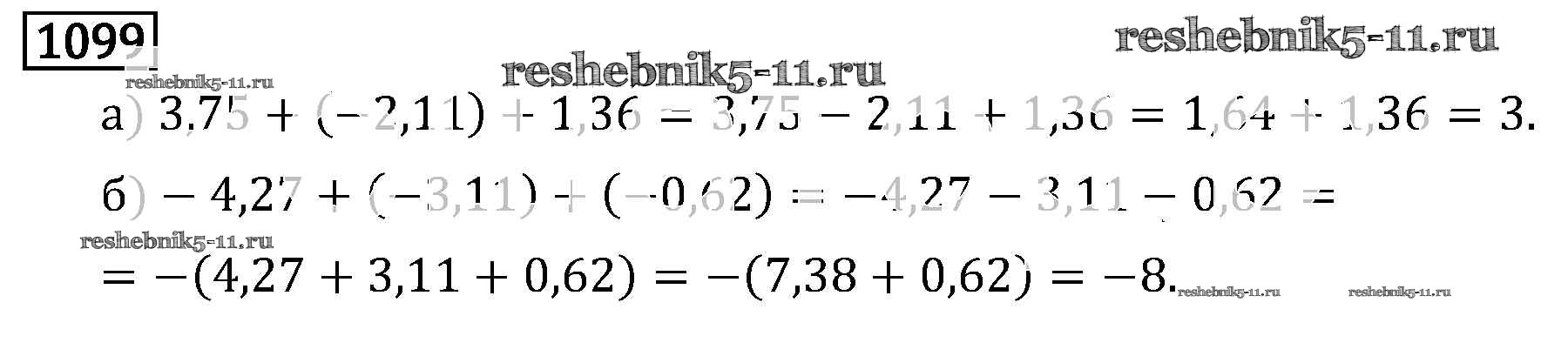 Готовая домашняя работа с ответами по Математике за 6 класс Виленкин, Жохов, Чесноков, Шварцбурд Учебник Мнемозина 2014 ФГОС - §6. Сложение и вычитание положительных и отрицательных чисел 1099