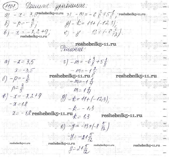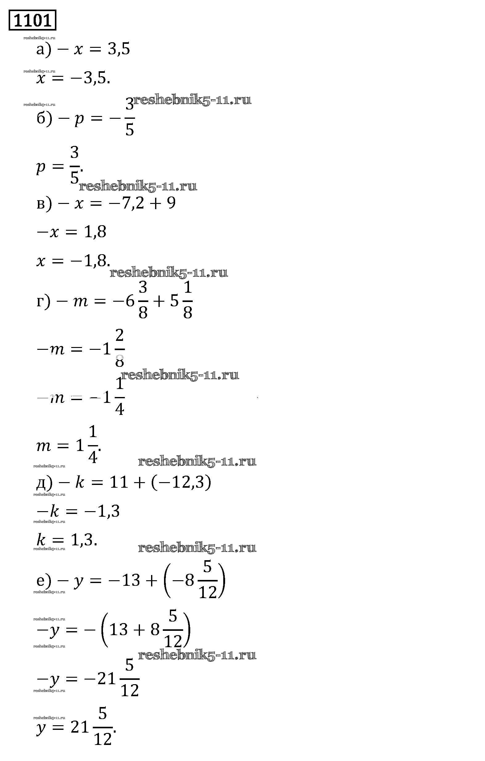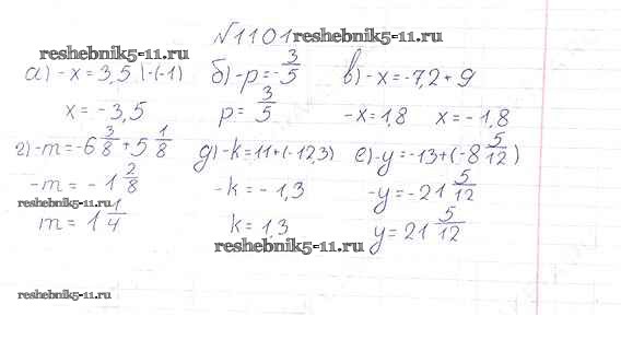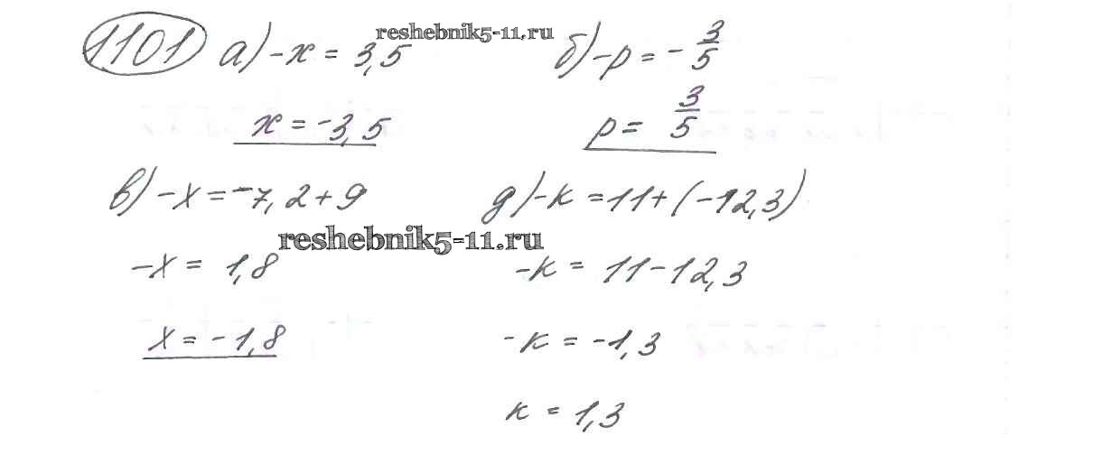 Готовая домашняя работа с ответами по Математике за 6 класс Виленкин, Жохов, Чесноков, Шварцбурд Учебник Мнемозина 2014 ФГОС - §6. Сложение и вычитание положительных и отрицательных чисел 1101