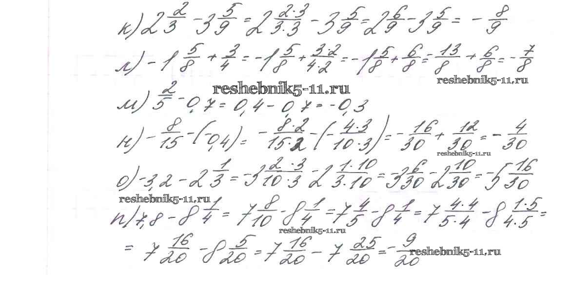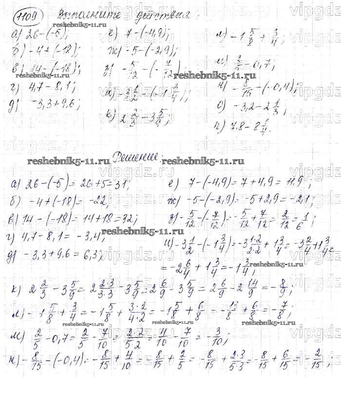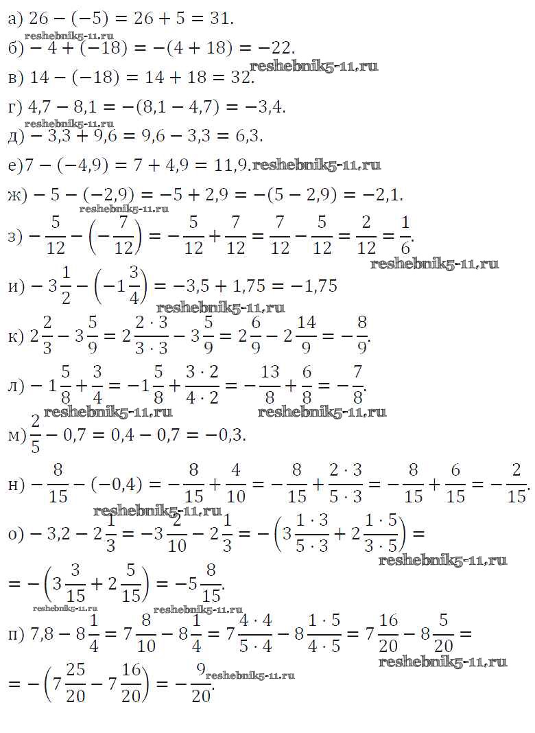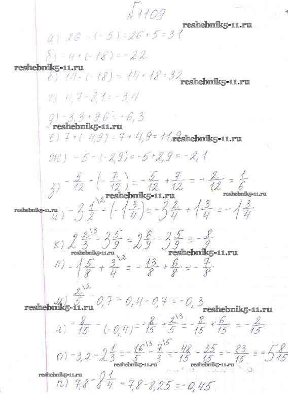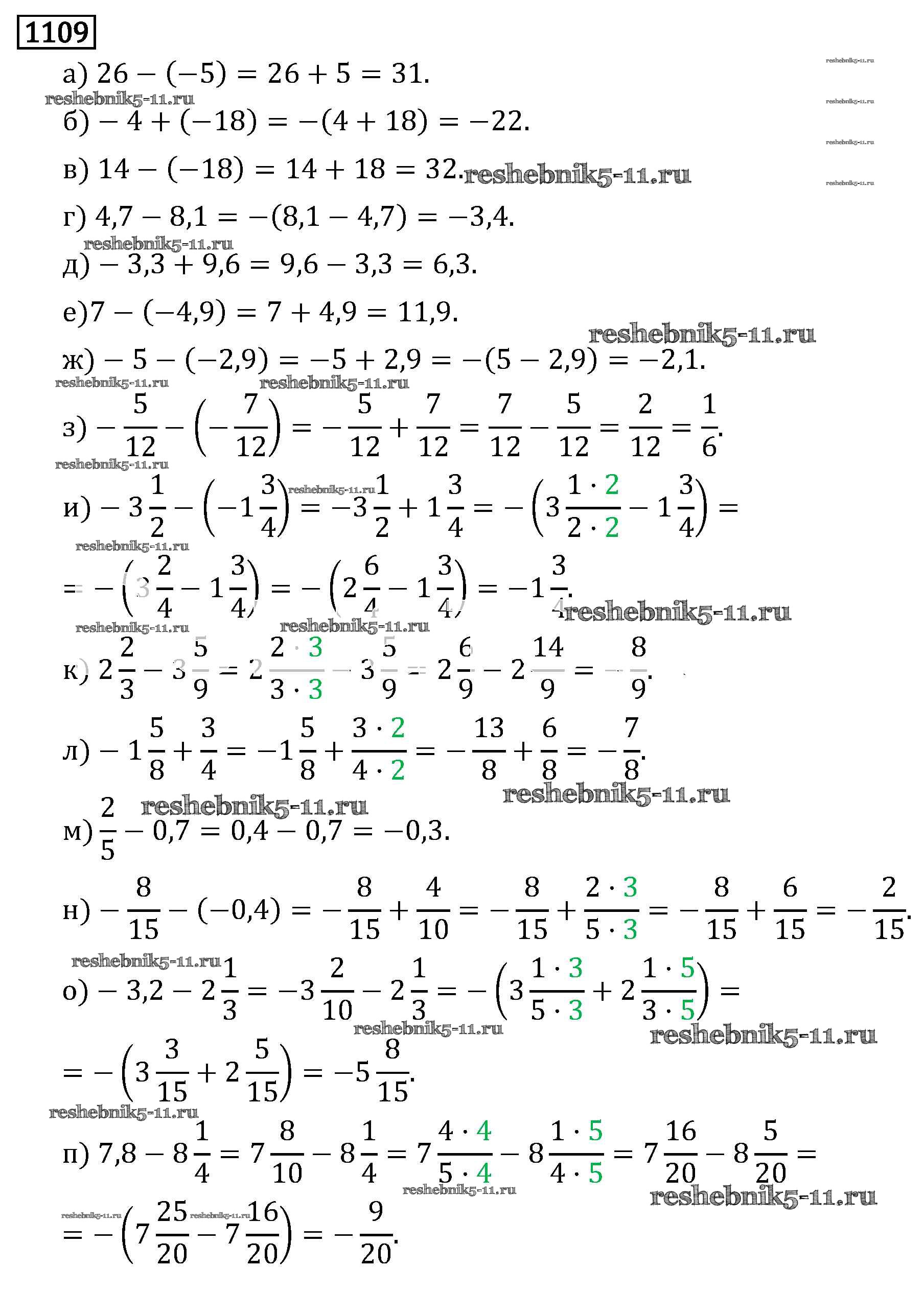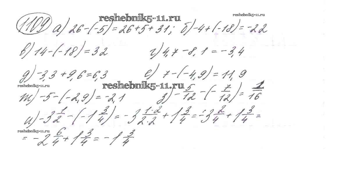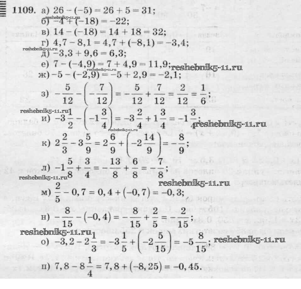 Готовая домашняя работа с ответами по Математике за 6 класс Виленкин, Жохов, Чесноков, Шварцбурд Учебник Мнемозина 2014 ФГОС - §6. Сложение и вычитание положительных и отрицательных чисел 1109