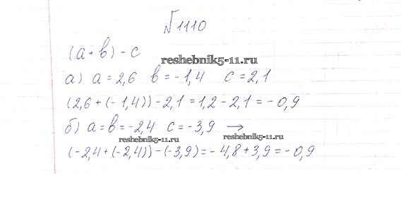 Готовая домашняя работа с ответами по Математике за 6 класс Виленкин, Жохов, Чесноков, Шварцбурд Учебник Мнемозина 2014 ФГОС - §6. Сложение и вычитание положительных и отрицательных чисел 1110