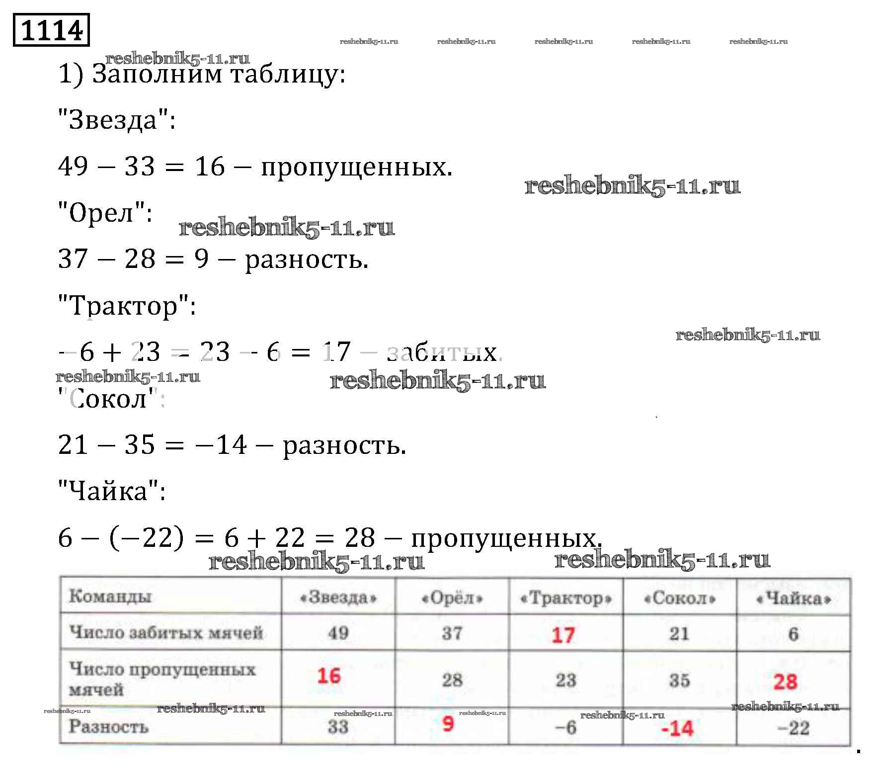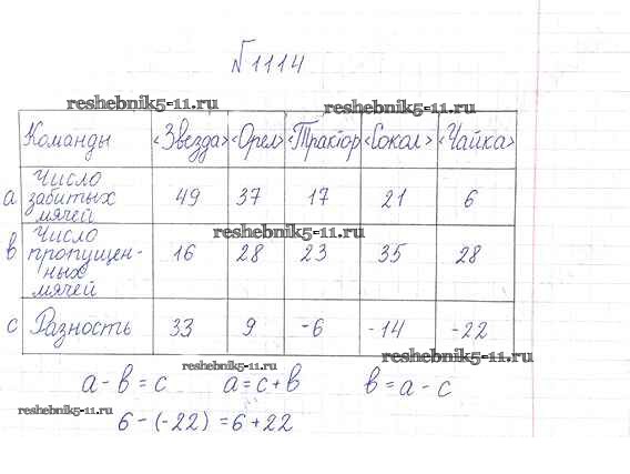 Готовая домашняя работа с ответами по Математике за 6 класс Виленкин, Жохов, Чесноков, Шварцбурд Учебник Мнемозина 2014 ФГОС - §6. Сложение и вычитание положительных и отрицательных чисел 1114