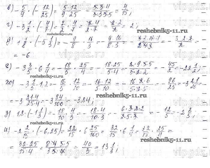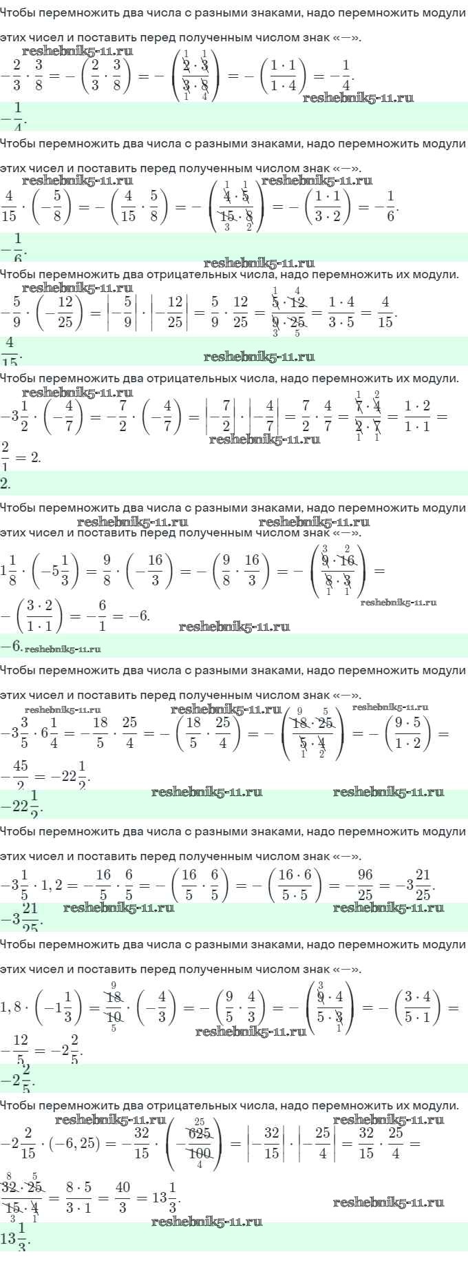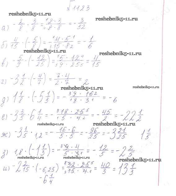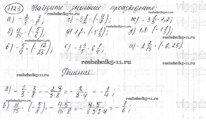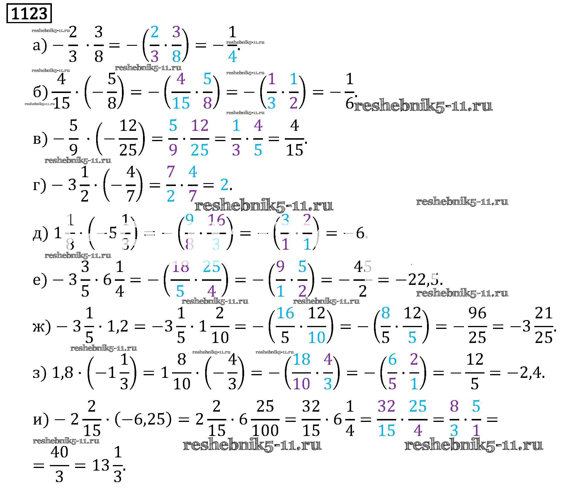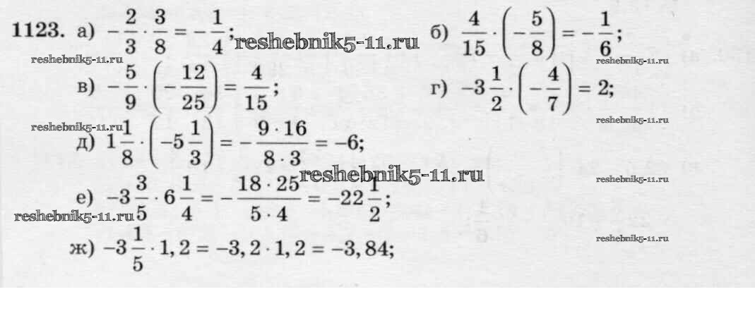 Готовая домашняя работа с ответами по Математике за 6 класс Виленкин, Жохов, Чесноков, Шварцбурд Учебник Мнемозина 2014 ФГОС - §7. Умножение и деление положительных и отрицательных чисел 1123