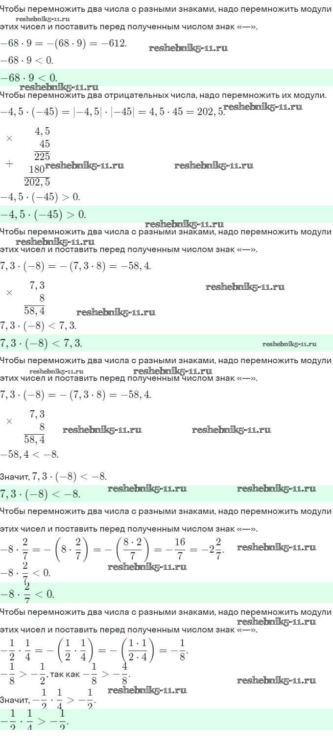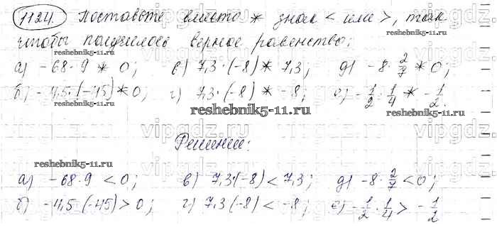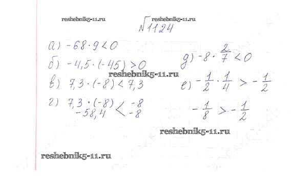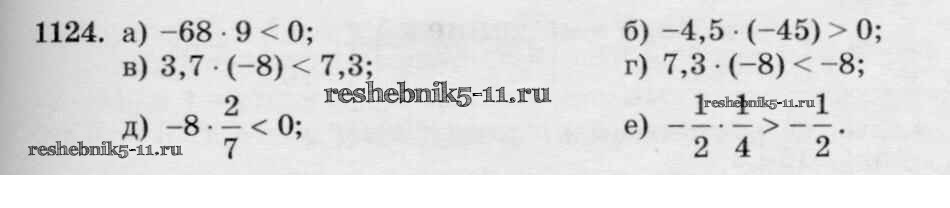 Готовая домашняя работа с ответами по Математике за 6 класс Виленкин, Жохов, Чесноков, Шварцбурд Учебник Мнемозина 2014 ФГОС - §7. Умножение и деление положительных и отрицательных чисел 1124