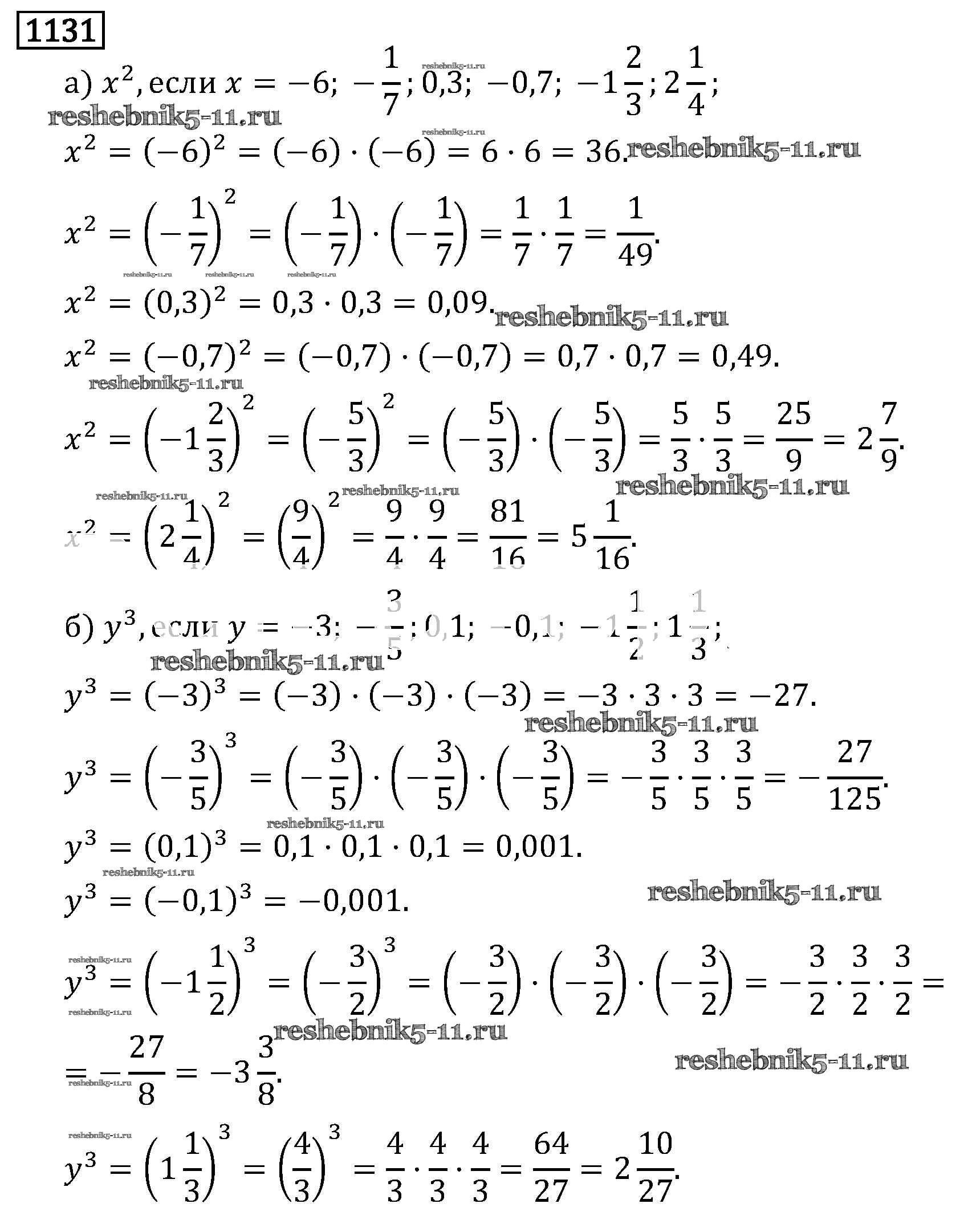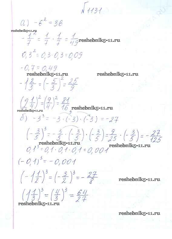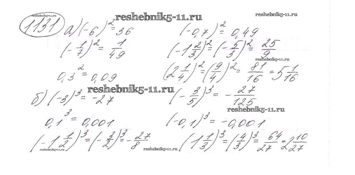 Готовая домашняя работа с ответами по Математике за 6 класс Виленкин, Жохов, Чесноков, Шварцбурд Учебник Мнемозина 2014 ФГОС - §7. Умножение и деление положительных и отрицательных чисел 1131