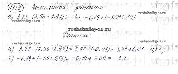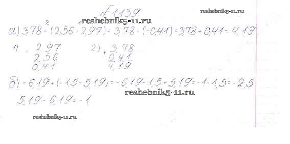 Готовая домашняя работа с ответами по Математике за 6 класс Виленкин, Жохов, Чесноков, Шварцбурд Учебник Мнемозина 2014 ФГОС - §7. Умножение и деление положительных и отрицательных чисел 1139