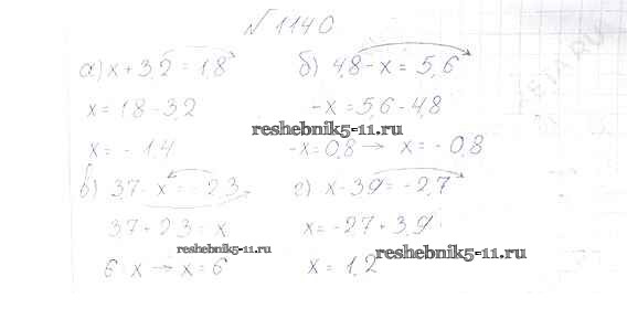 Готовая домашняя работа с ответами по Математике за 6 класс Виленкин, Жохов, Чесноков, Шварцбурд Учебник Мнемозина 2014 ФГОС - §7. Умножение и деление положительных и отрицательных чисел 1140