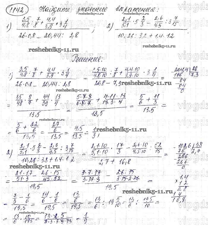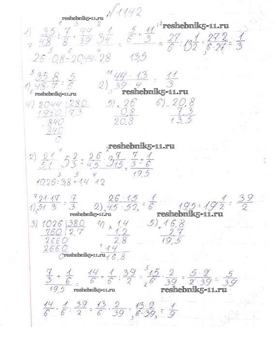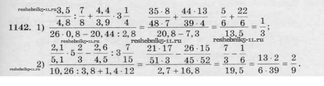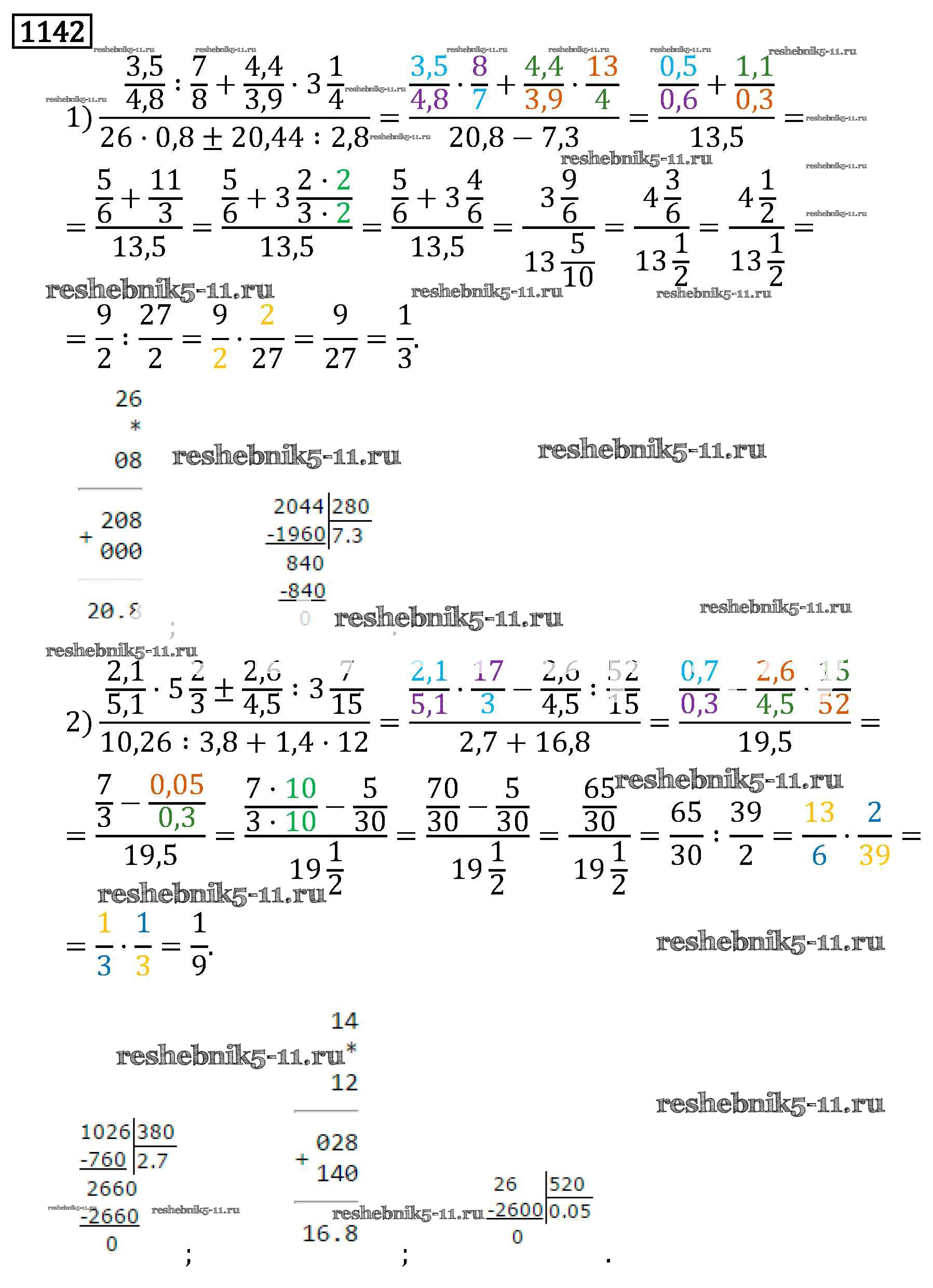 Готовая домашняя работа с ответами по Математике за 6 класс Виленкин, Жохов, Чесноков, Шварцбурд Учебник Мнемозина 2014 ФГОС - §7. Умножение и деление положительных и отрицательных чисел 1142