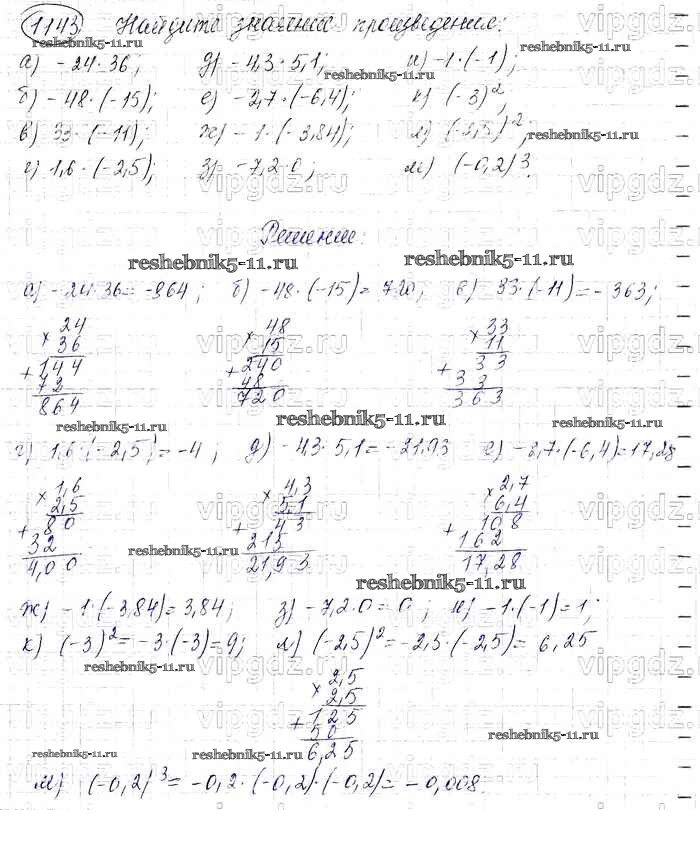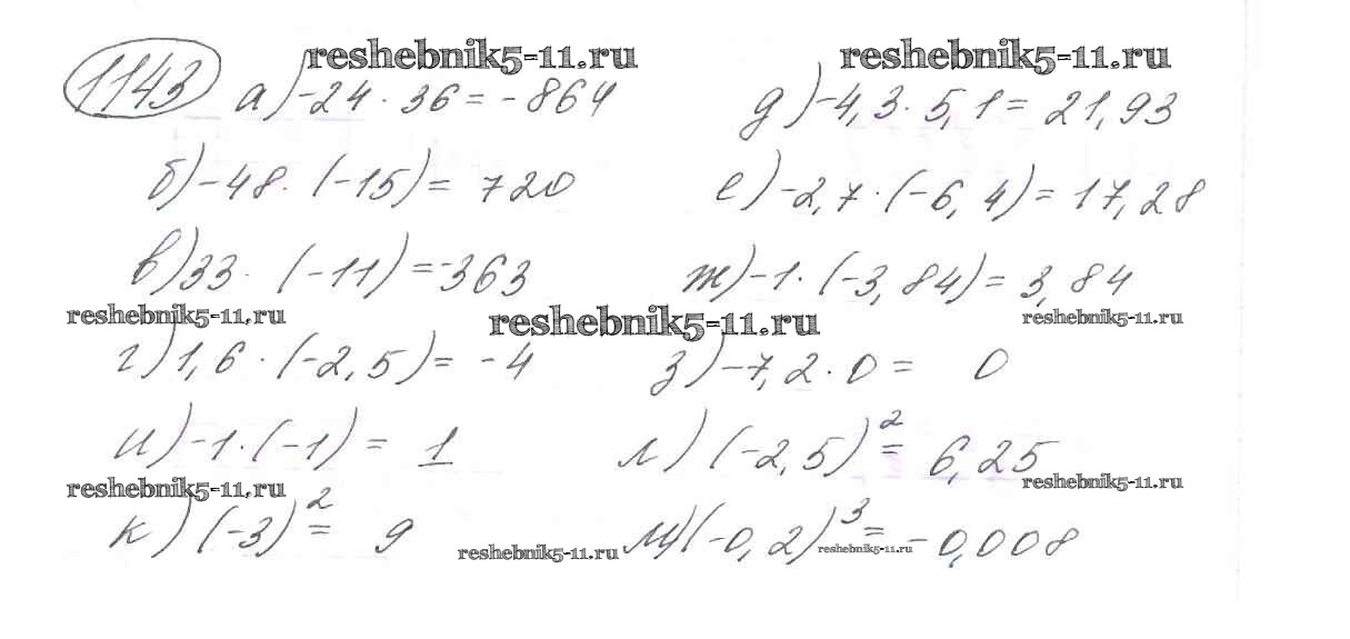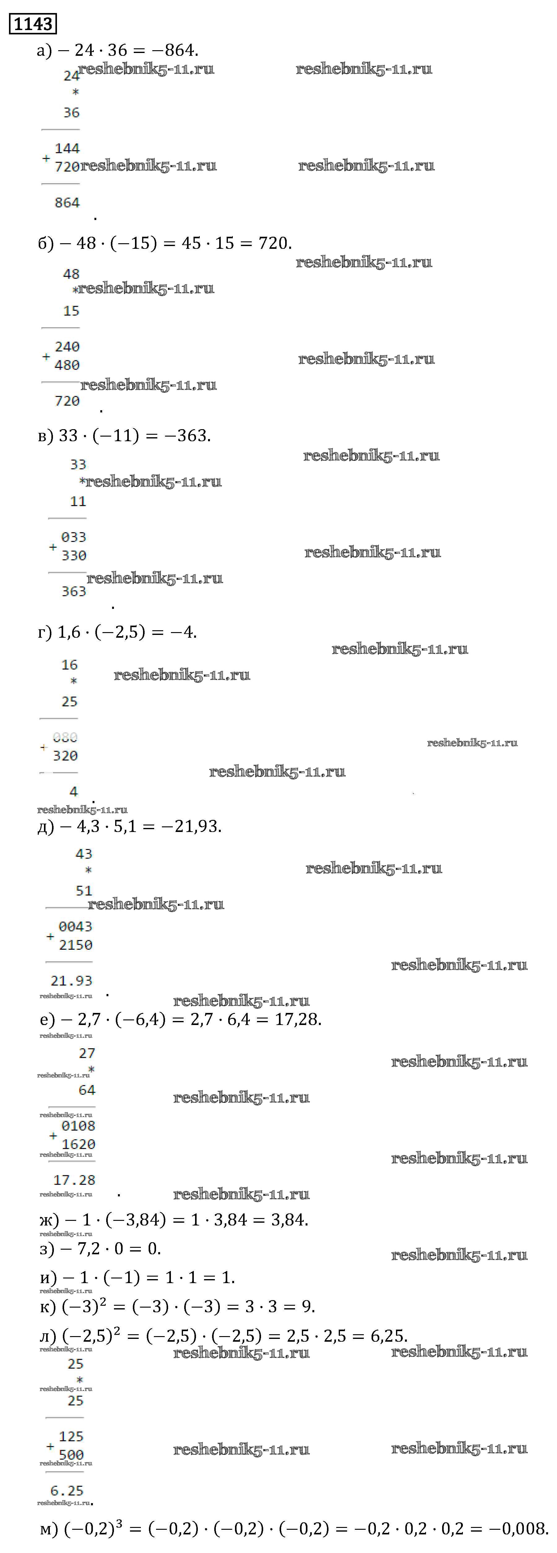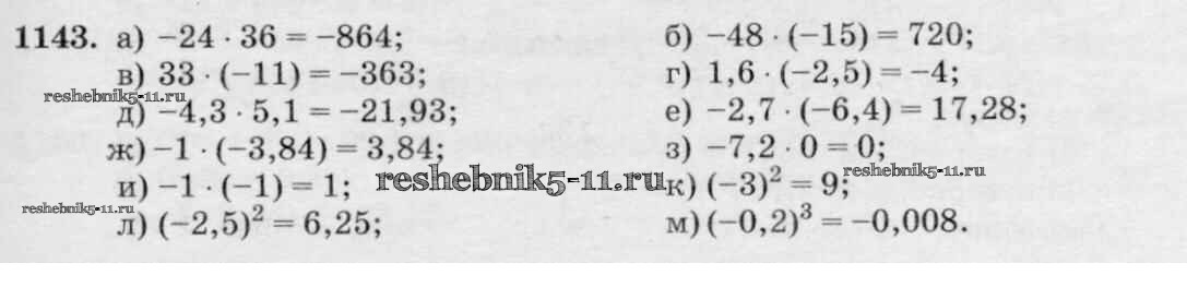 Готовая домашняя работа с ответами по Математике за 6 класс Виленкин, Жохов, Чесноков, Шварцбурд Учебник Мнемозина 2014 ФГОС - §7. Умножение и деление положительных и отрицательных чисел 1143