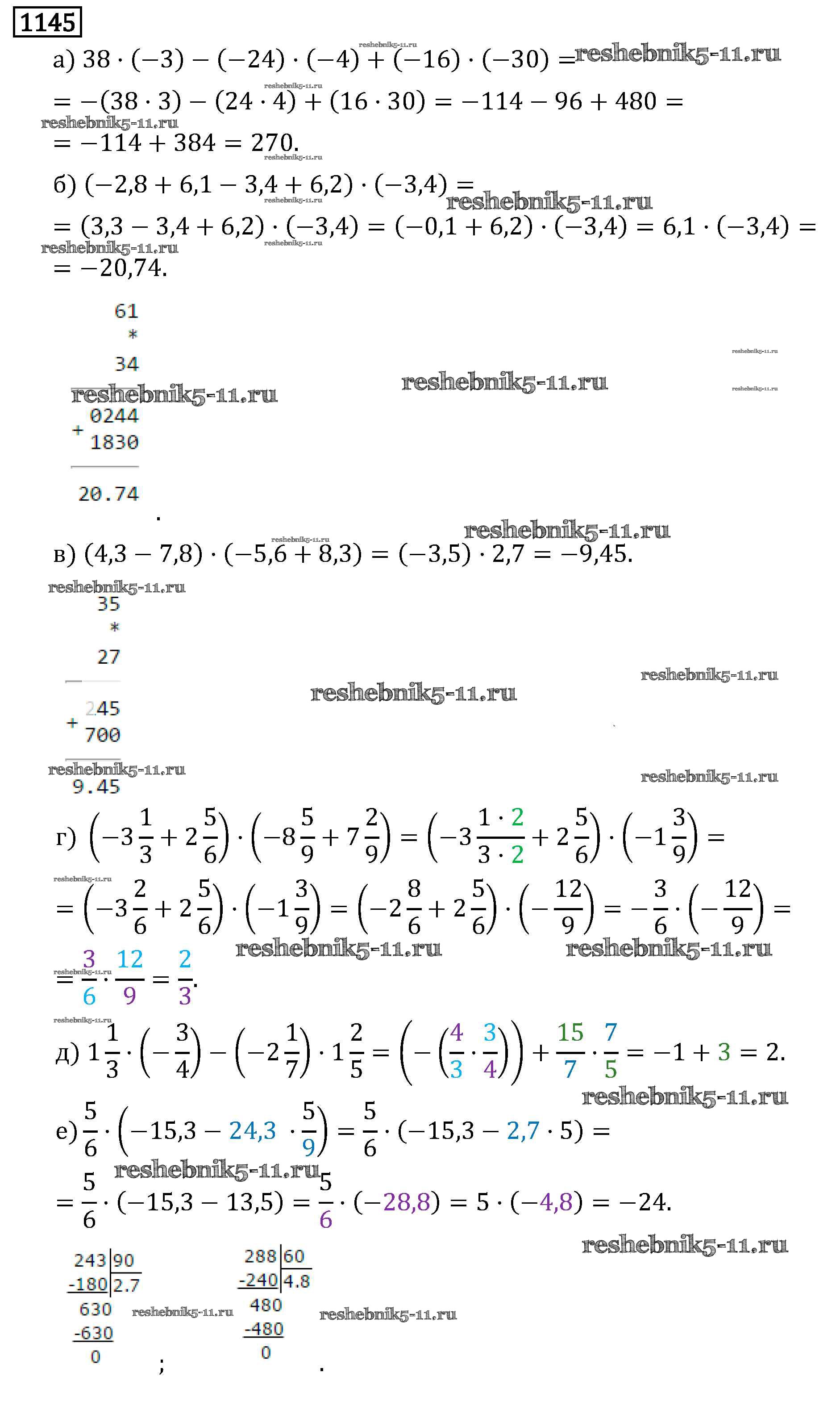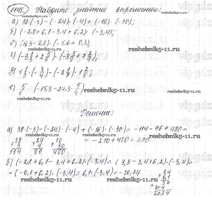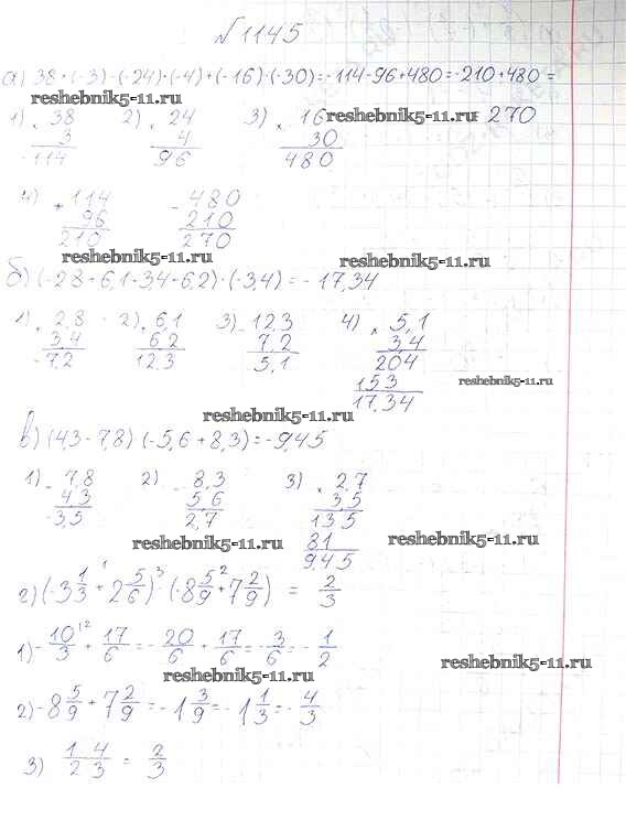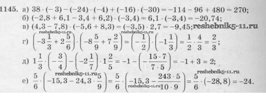 Готовая домашняя работа с ответами по Математике за 6 класс Виленкин, Жохов, Чесноков, Шварцбурд Учебник Мнемозина 2014 ФГОС - §7. Умножение и деление положительных и отрицательных чисел 1145