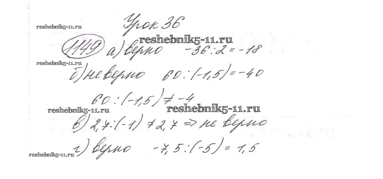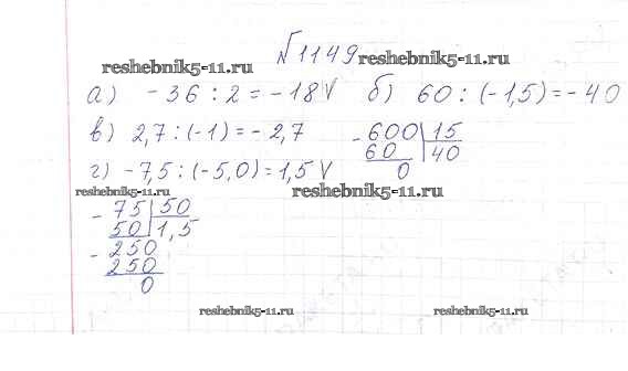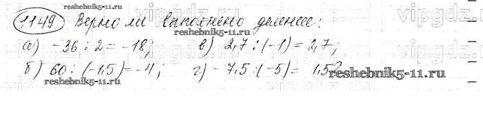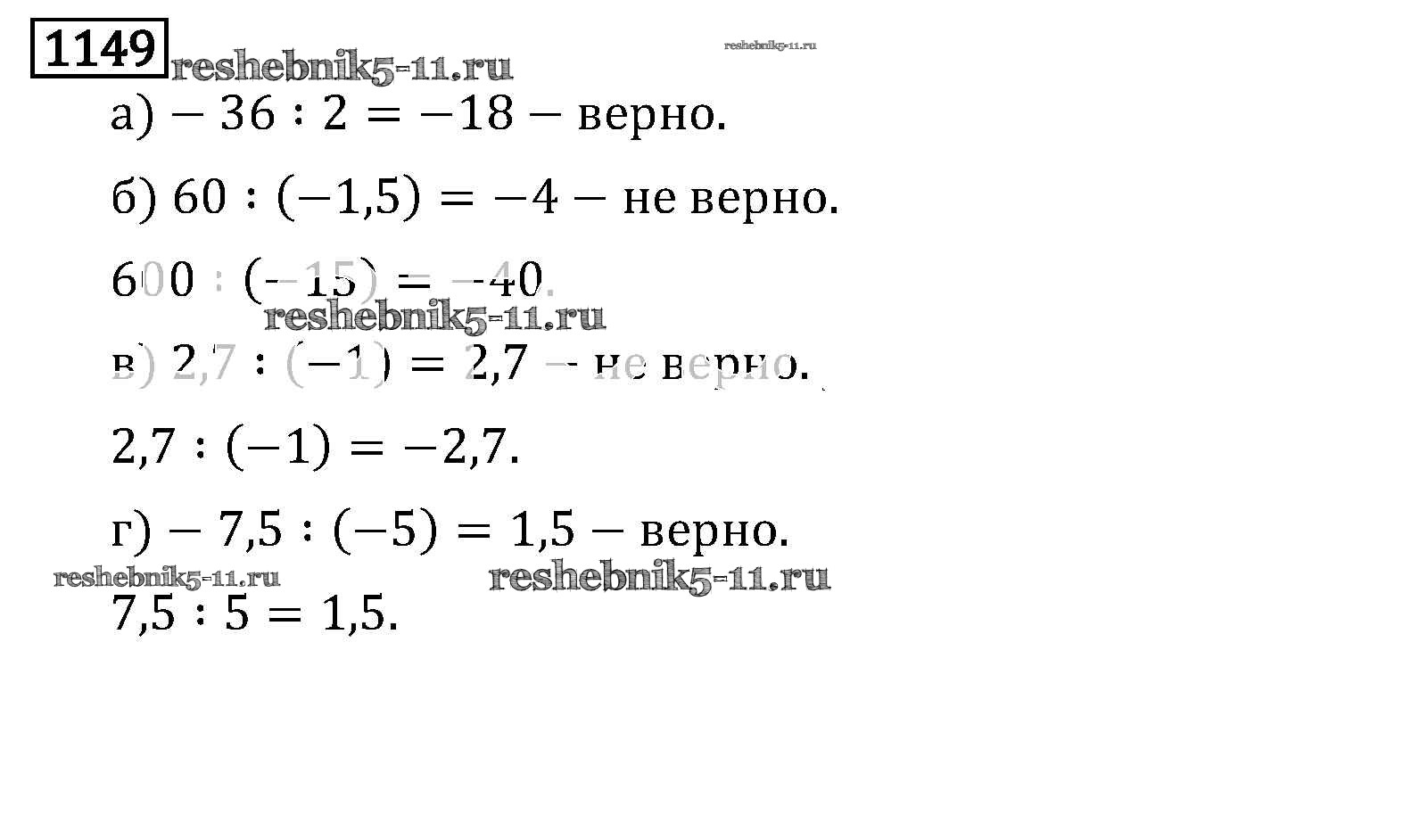 Готовая домашняя работа с ответами по Математике за 6 класс Виленкин, Жохов, Чесноков, Шварцбурд Учебник Мнемозина 2014 ФГОС - §7. Умножение и деление положительных и отрицательных чисел 1149