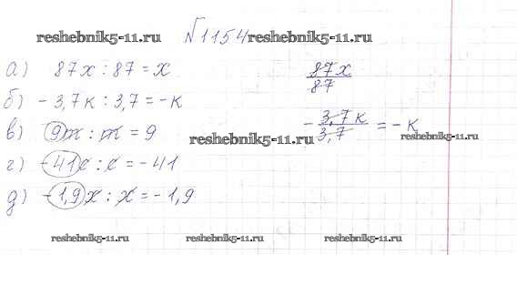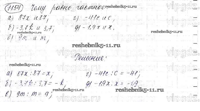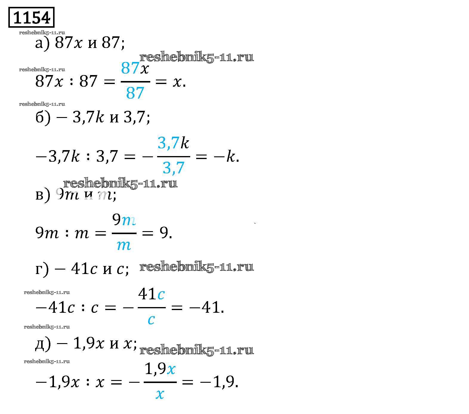 Готовая домашняя работа с ответами по Математике за 6 класс Виленкин, Жохов, Чесноков, Шварцбурд Учебник Мнемозина 2014 ФГОС - §7. Умножение и деление положительных и отрицательных чисел 1154