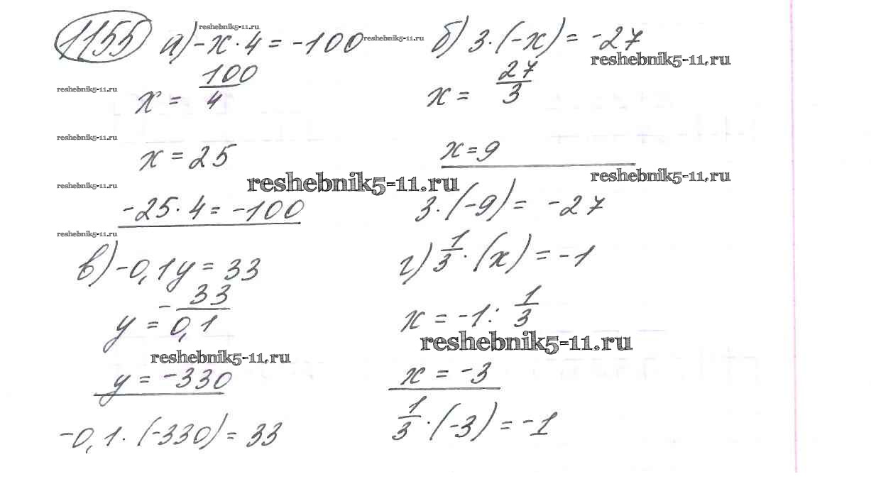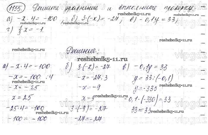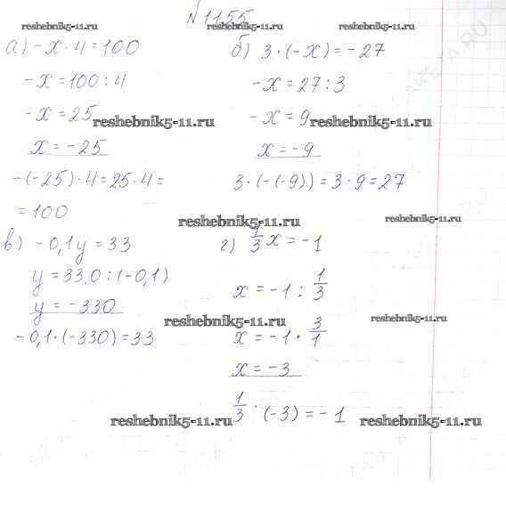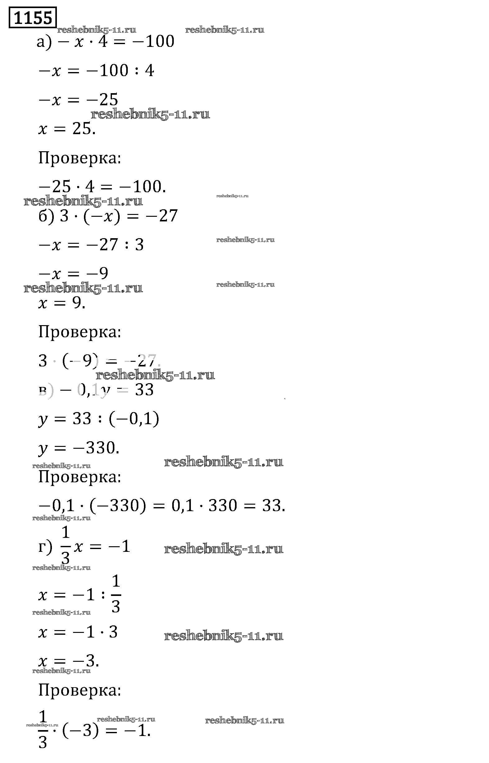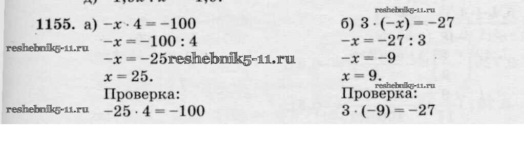 Готовая домашняя работа с ответами по Математике за 6 класс Виленкин, Жохов, Чесноков, Шварцбурд Учебник Мнемозина 2014 ФГОС - §7. Умножение и деление положительных и отрицательных чисел 1155