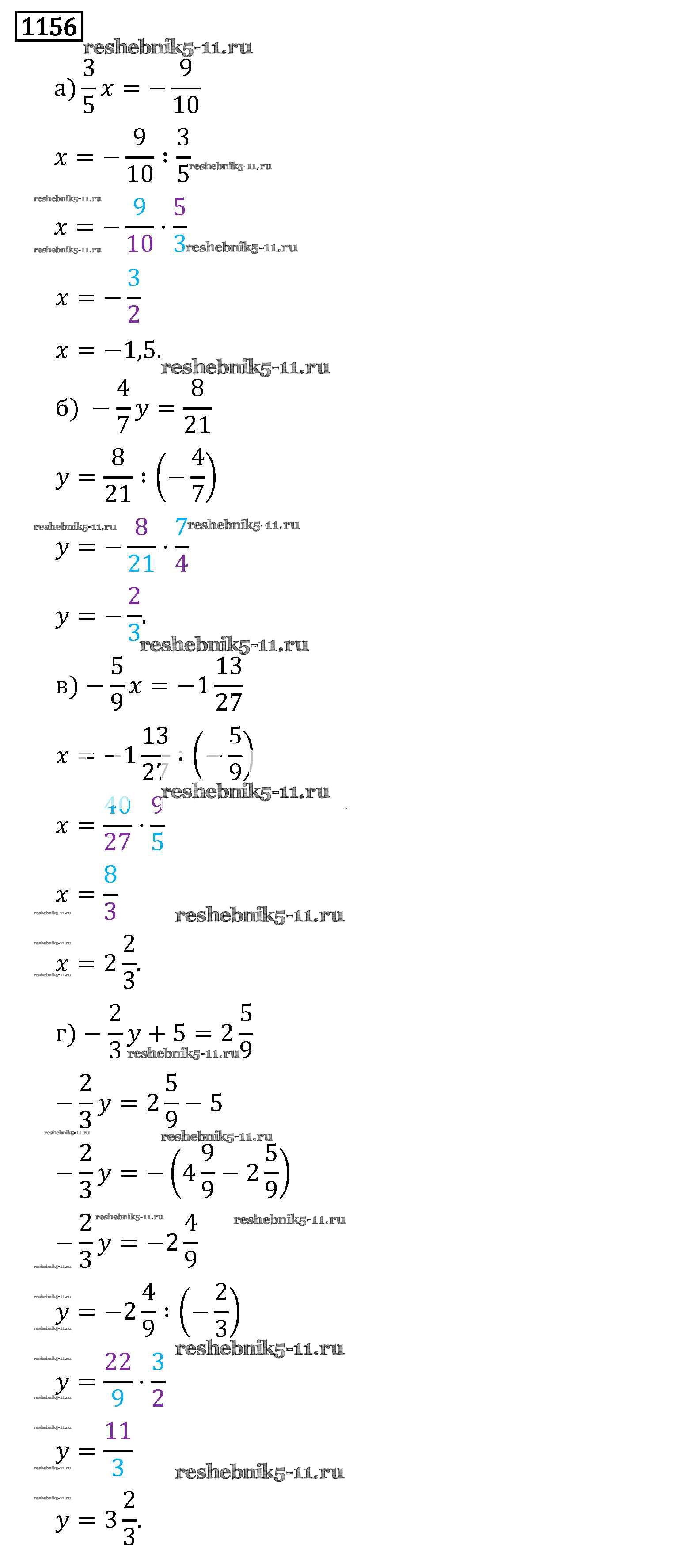 Готовая домашняя работа с ответами по Математике за 6 класс Виленкин, Жохов, Чесноков, Шварцбурд Учебник Мнемозина 2014 ФГОС - §7. Умножение и деление положительных и отрицательных чисел 1156