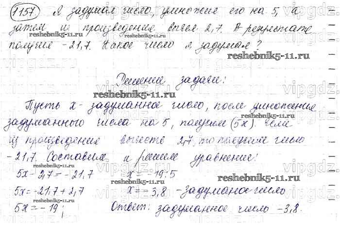 Готовая домашняя работа с ответами по Математике за 6 класс Виленкин, Жохов, Чесноков, Шварцбурд Учебник Мнемозина 2014 ФГОС - §7. Умножение и деление положительных и отрицательных чисел 1157