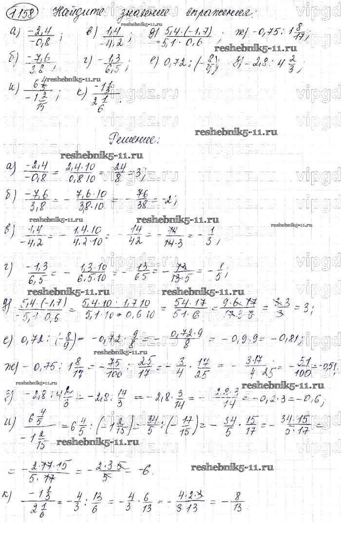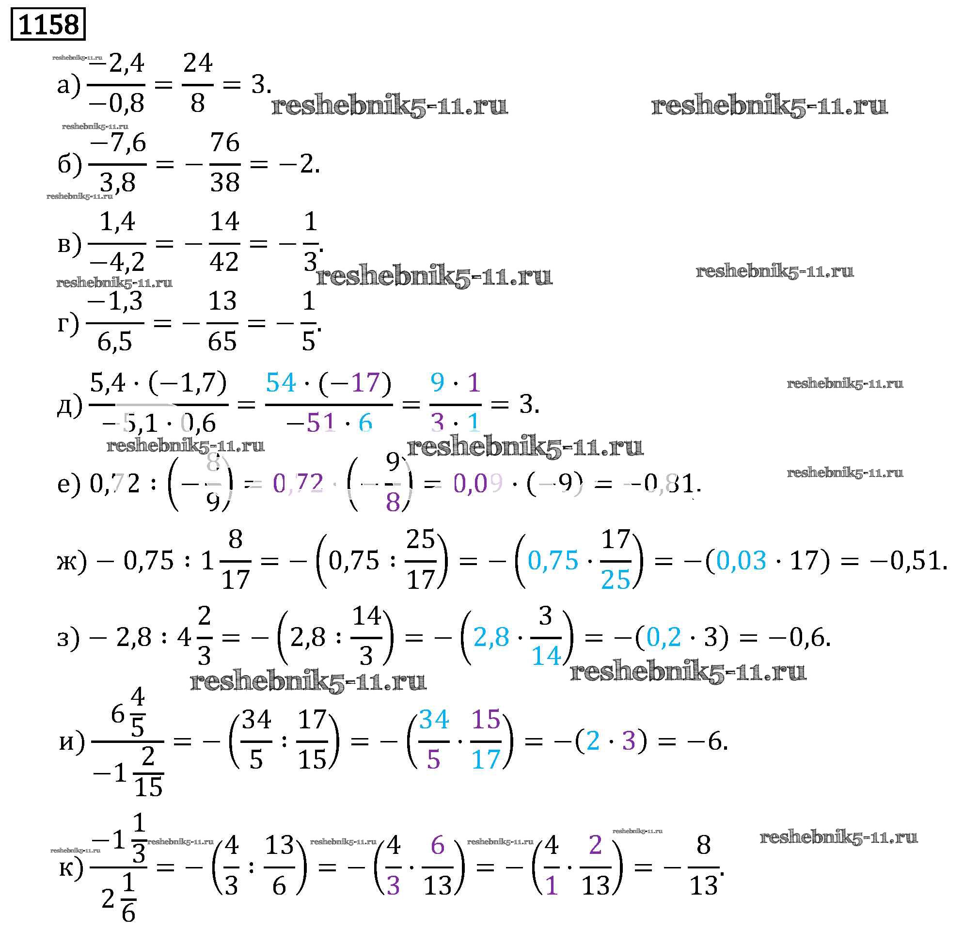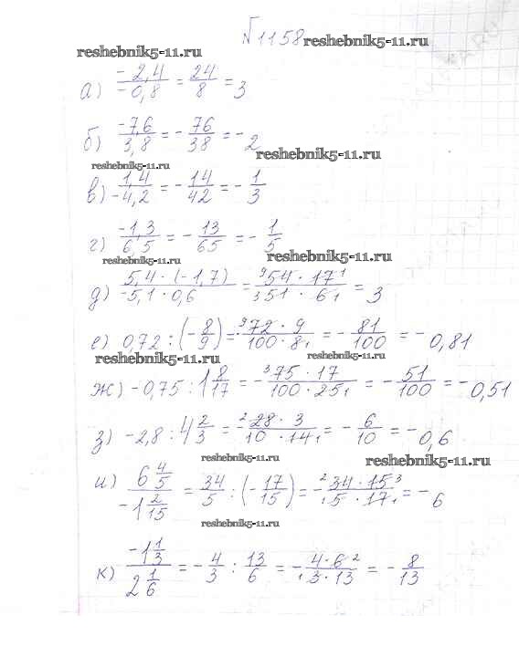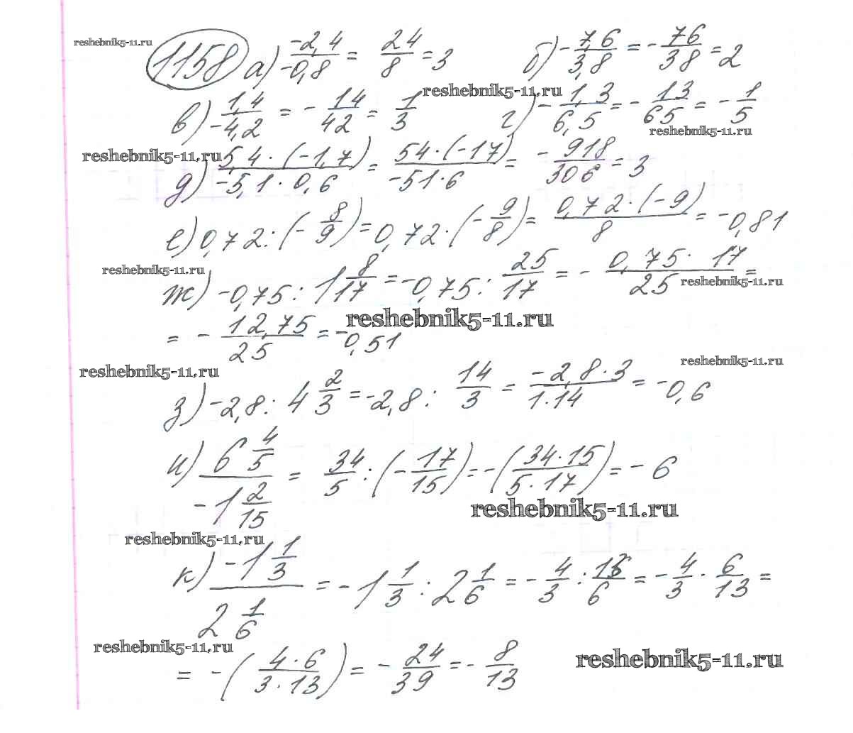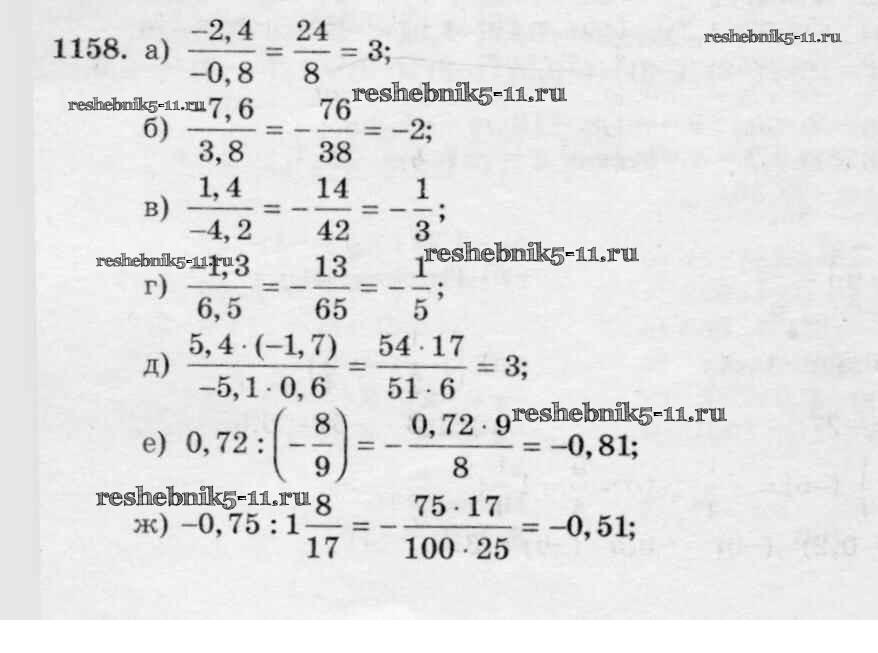 Готовая домашняя работа с ответами по Математике за 6 класс Виленкин, Жохов, Чесноков, Шварцбурд Учебник Мнемозина 2014 ФГОС - §7. Умножение и деление положительных и отрицательных чисел 1158