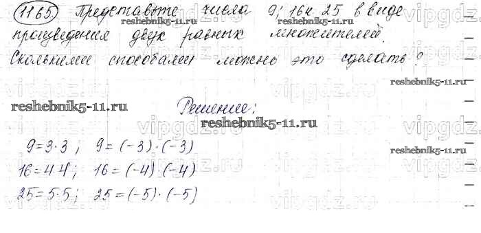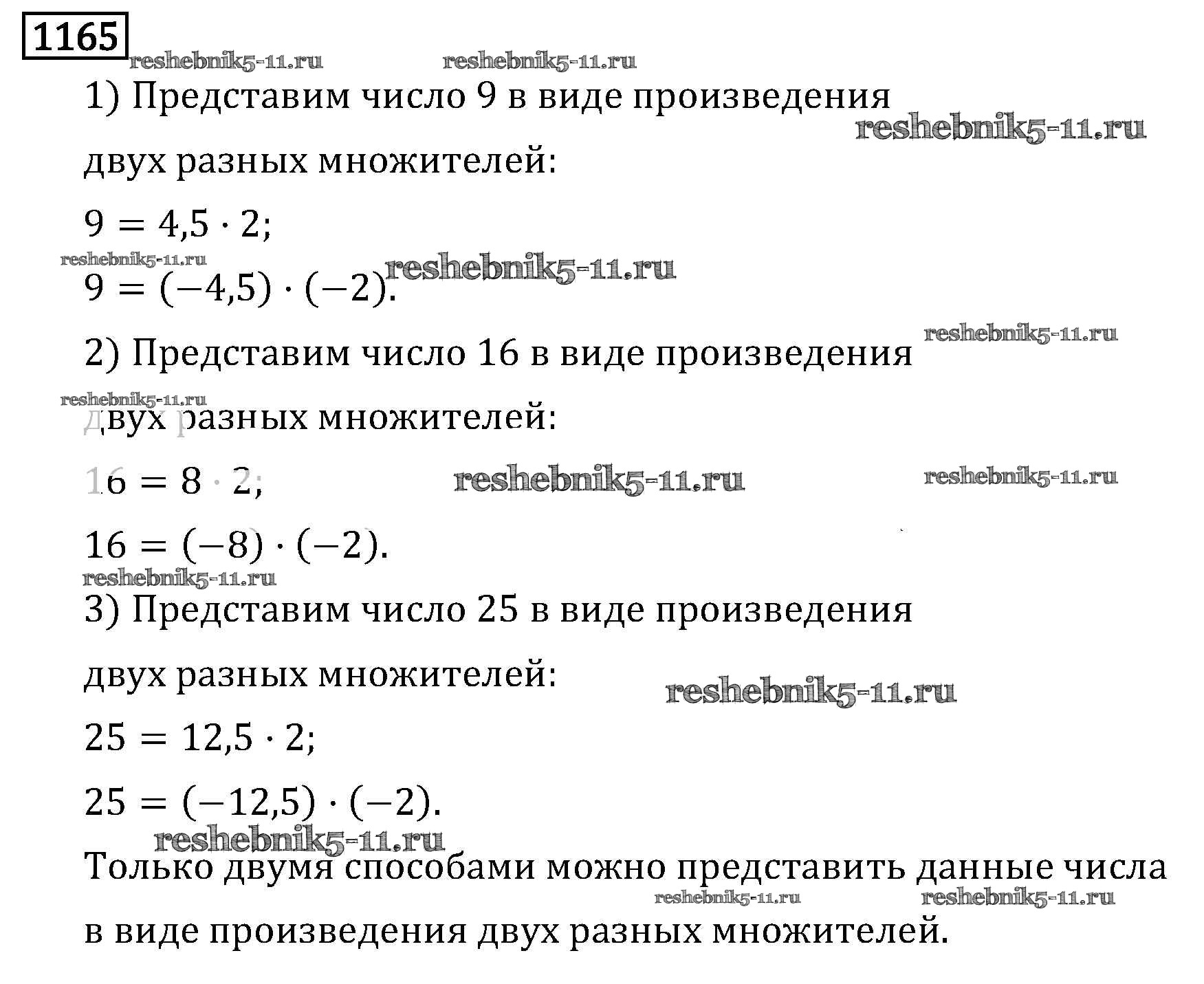 Готовая домашняя работа с ответами по Математике за 6 класс Виленкин, Жохов, Чесноков, Шварцбурд Учебник Мнемозина 2014 ФГОС - §7. Умножение и деление положительных и отрицательных чисел 1165