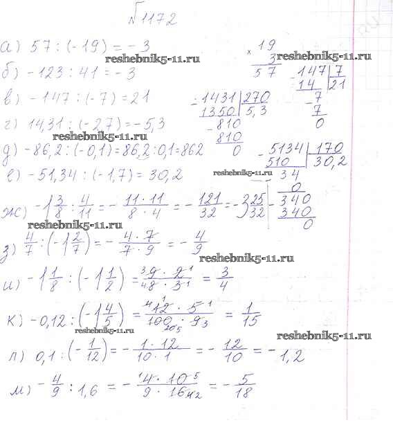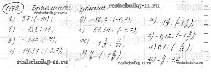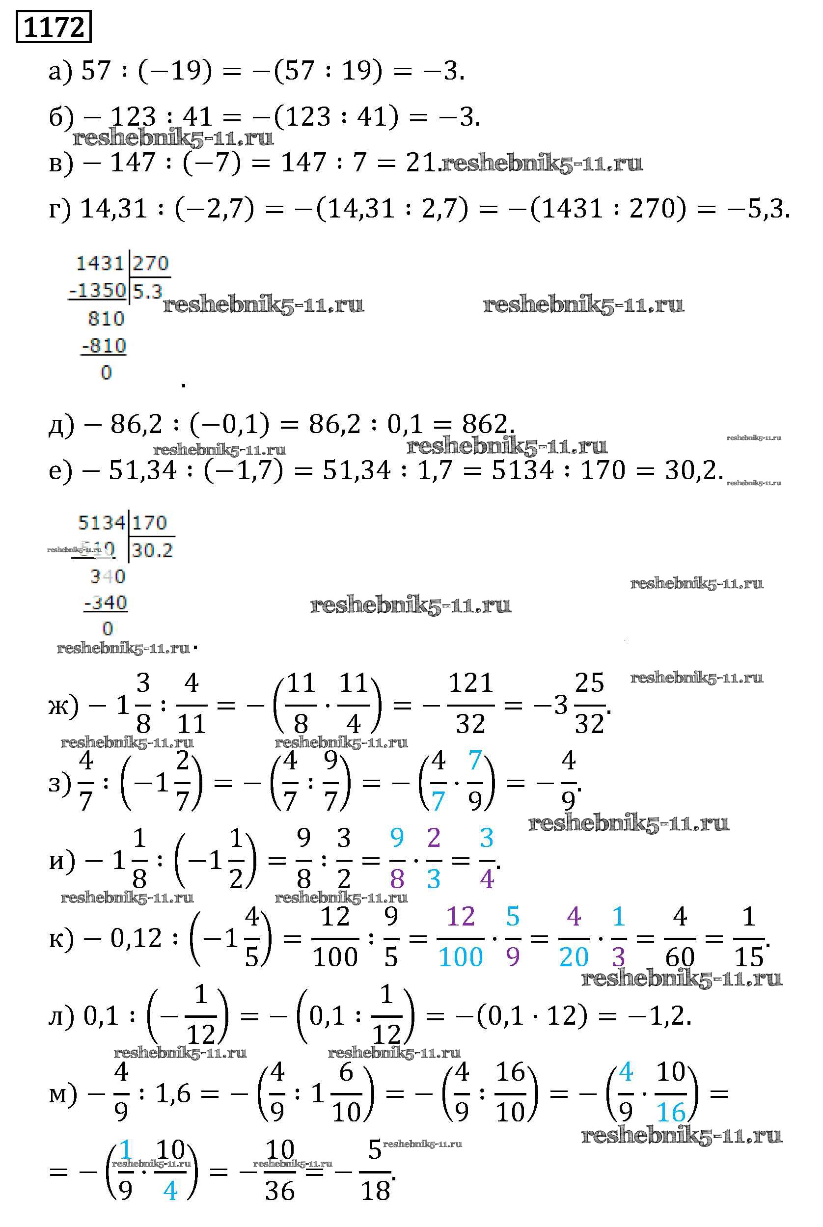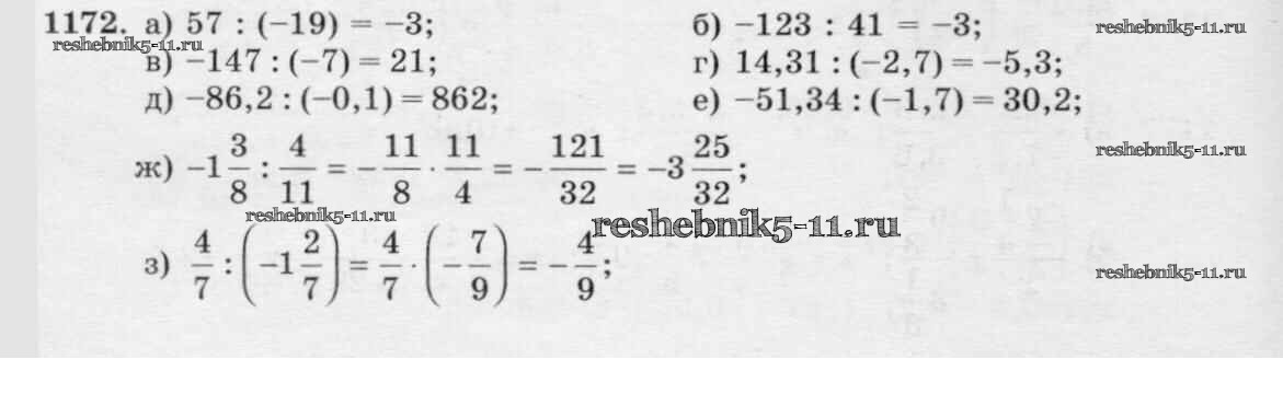 Готовая домашняя работа с ответами по Математике за 6 класс Виленкин, Жохов, Чесноков, Шварцбурд Учебник Мнемозина 2014 ФГОС - §7. Умножение и деление положительных и отрицательных чисел 1172