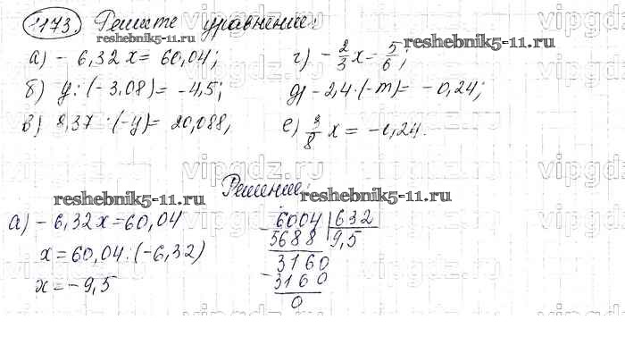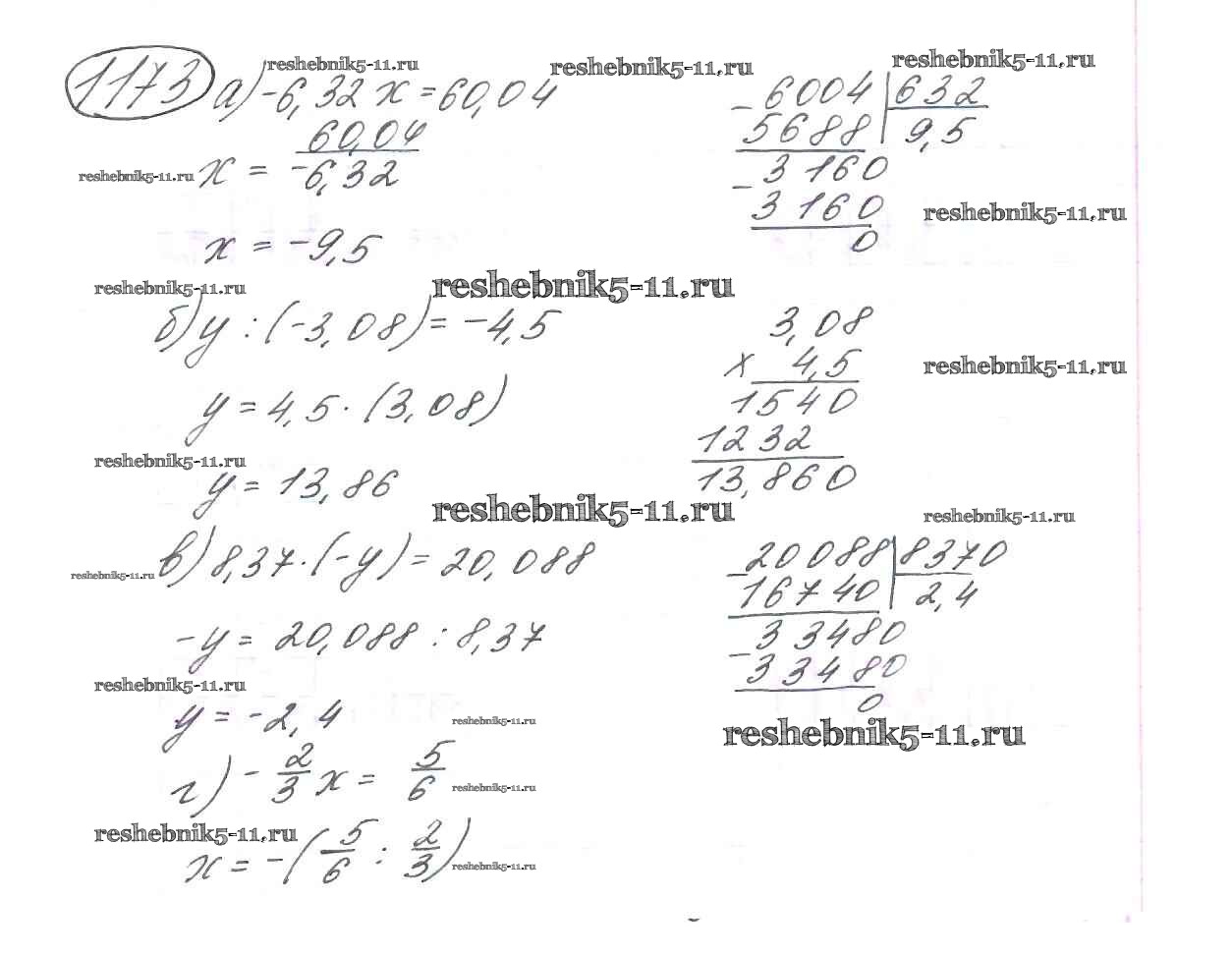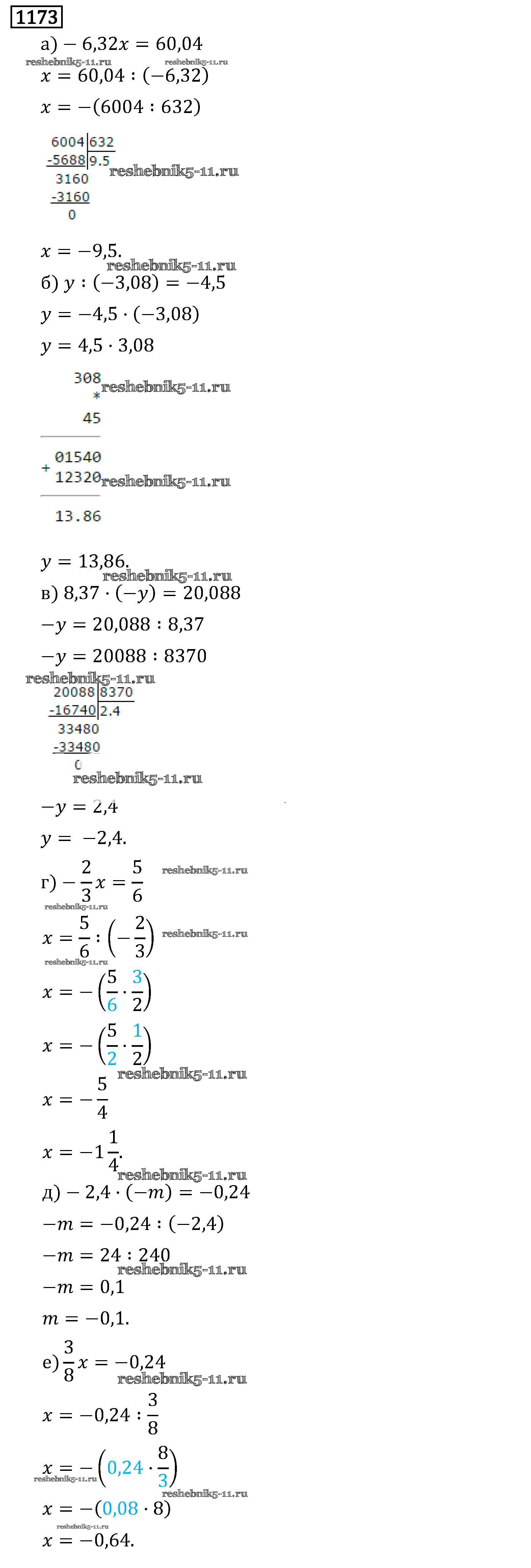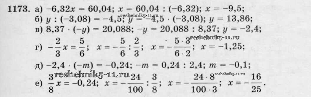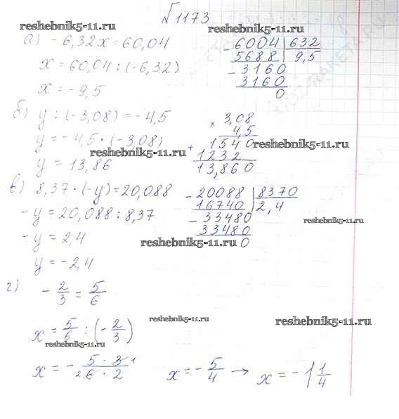 Готовая домашняя работа с ответами по Математике за 6 класс Виленкин, Жохов, Чесноков, Шварцбурд Учебник Мнемозина 2014 ФГОС - §7. Умножение и деление положительных и отрицательных чисел 1173