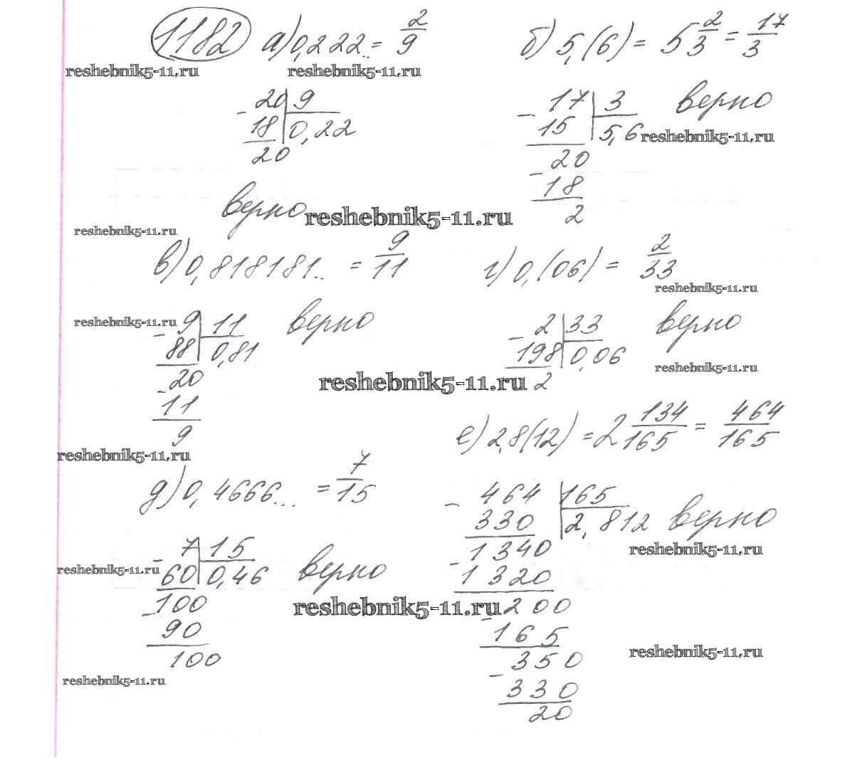 Готовая домашняя работа с ответами по Математике за 6 класс Виленкин, Жохов, Чесноков, Шварцбурд Учебник Мнемозина 2014 ФГОС - §7. Умножение и деление положительных и отрицательных чисел 1182