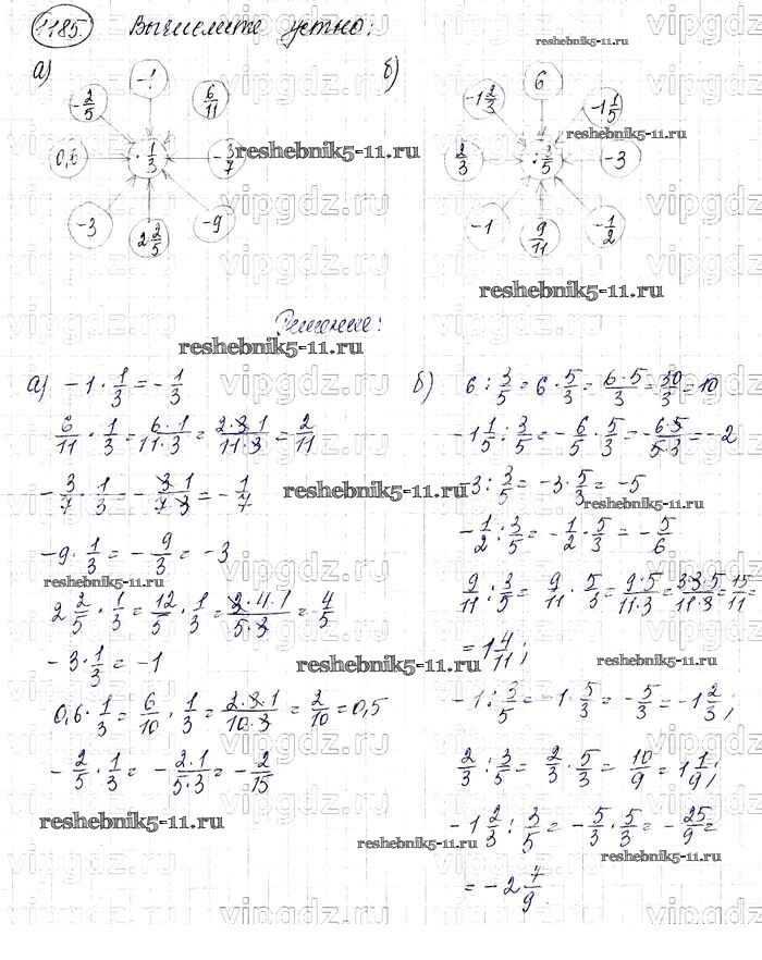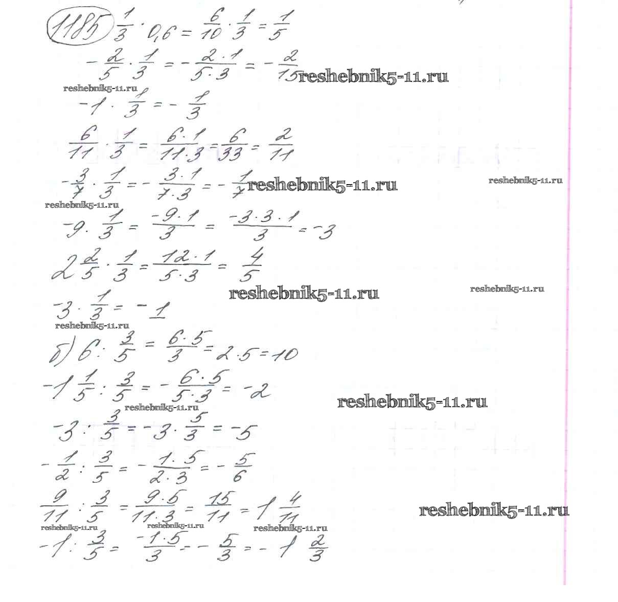 Готовая домашняя работа с ответами по Математике за 6 класс Виленкин, Жохов, Чесноков, Шварцбурд Учебник Мнемозина 2014 ФГОС - §7. Умножение и деление положительных и отрицательных чисел 1185