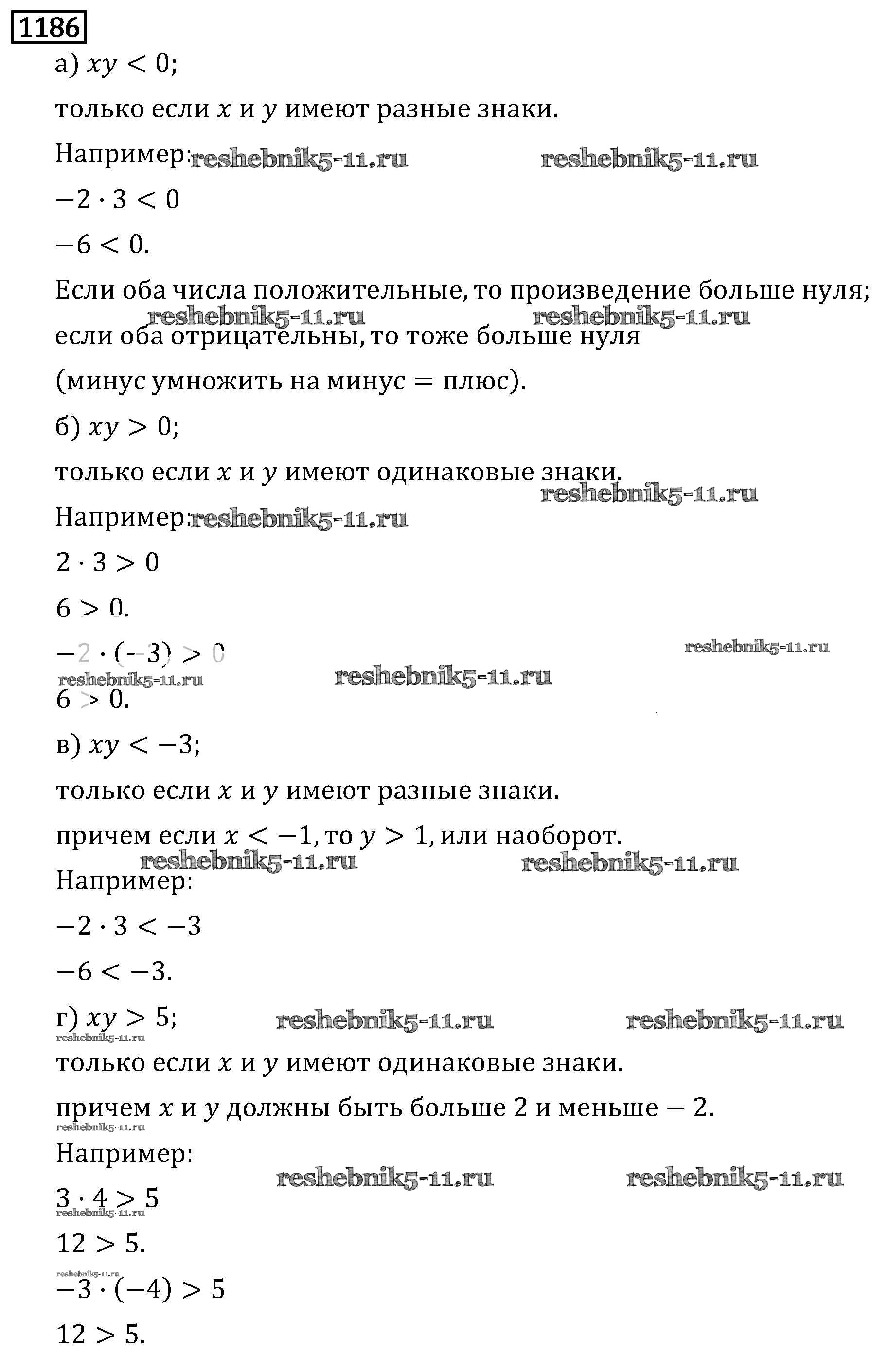 Готовая домашняя работа с ответами по Математике за 6 класс Виленкин, Жохов, Чесноков, Шварцбурд Учебник Мнемозина 2014 ФГОС - §7. Умножение и деление положительных и отрицательных чисел 1186