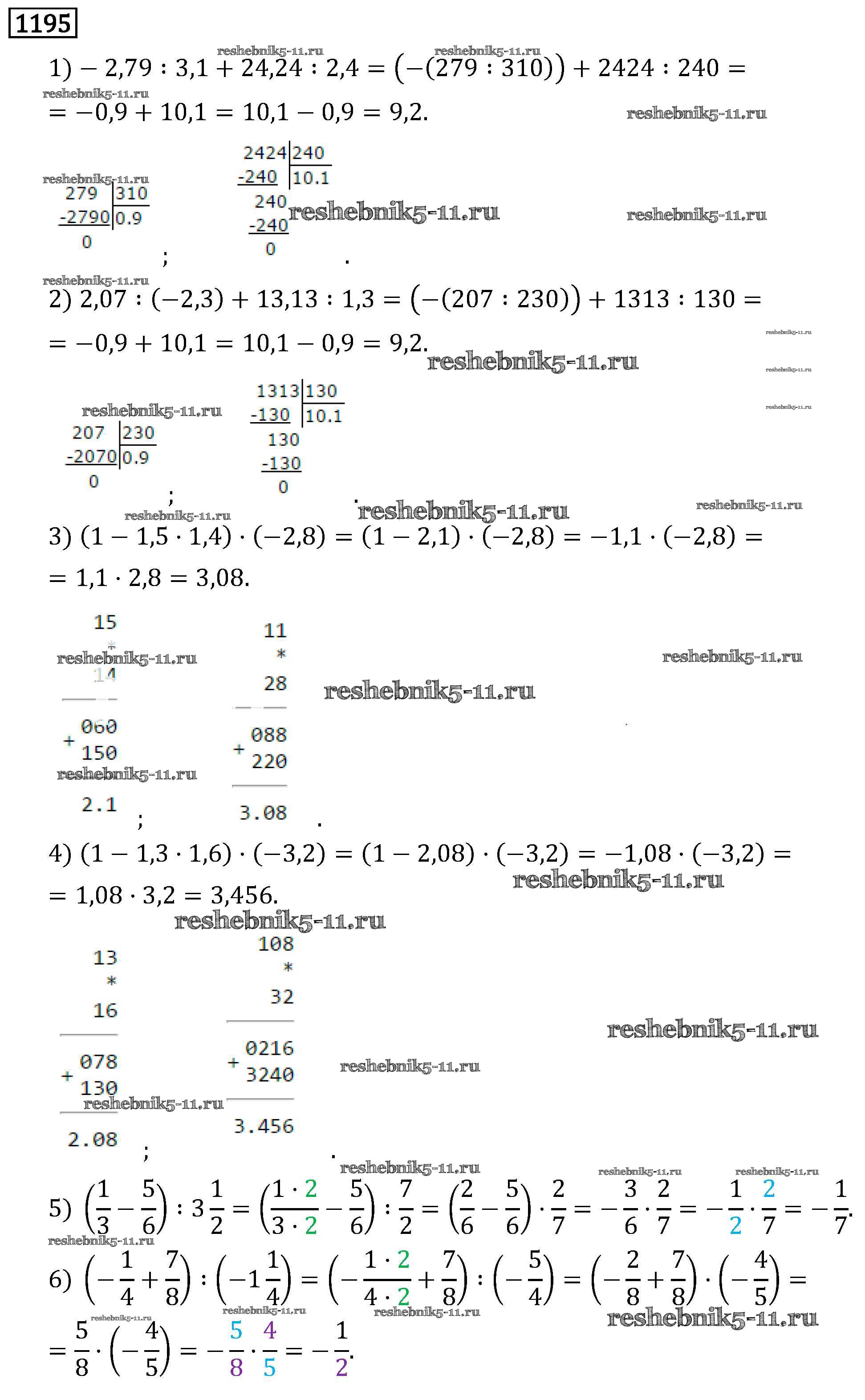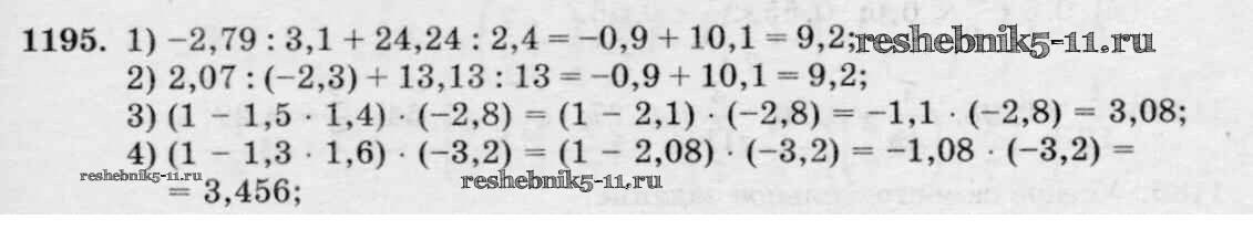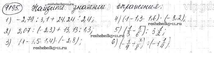 Готовая домашняя работа с ответами по Математике за 6 класс Виленкин, Жохов, Чесноков, Шварцбурд Учебник Мнемозина 2014 ФГОС - §7. Умножение и деление положительных и отрицательных чисел 1195