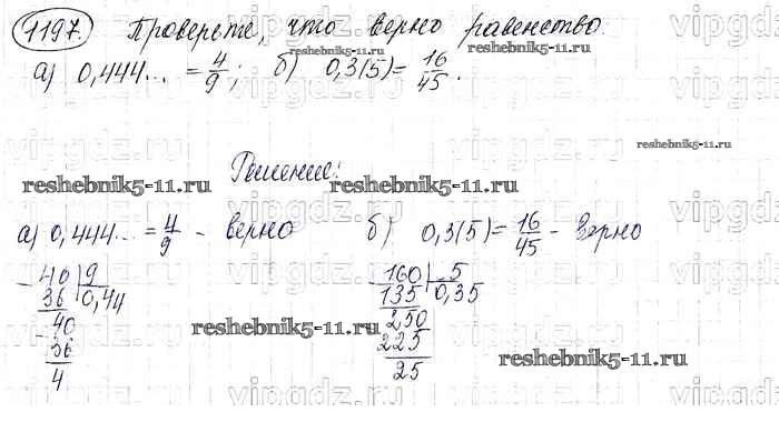 Готовая домашняя работа с ответами по Математике за 6 класс Виленкин, Жохов, Чесноков, Шварцбурд Учебник Мнемозина 2014 ФГОС - §7. Умножение и деление положительных и отрицательных чисел 1197