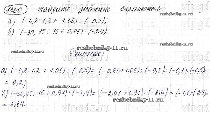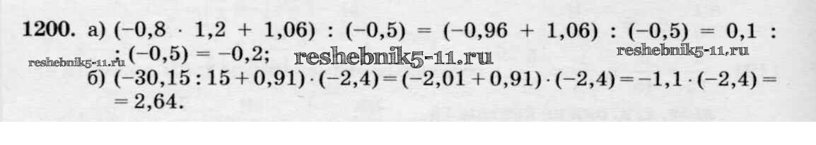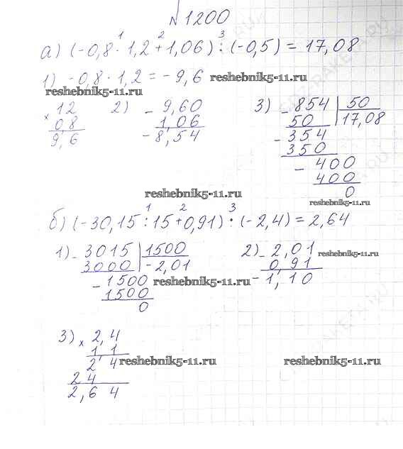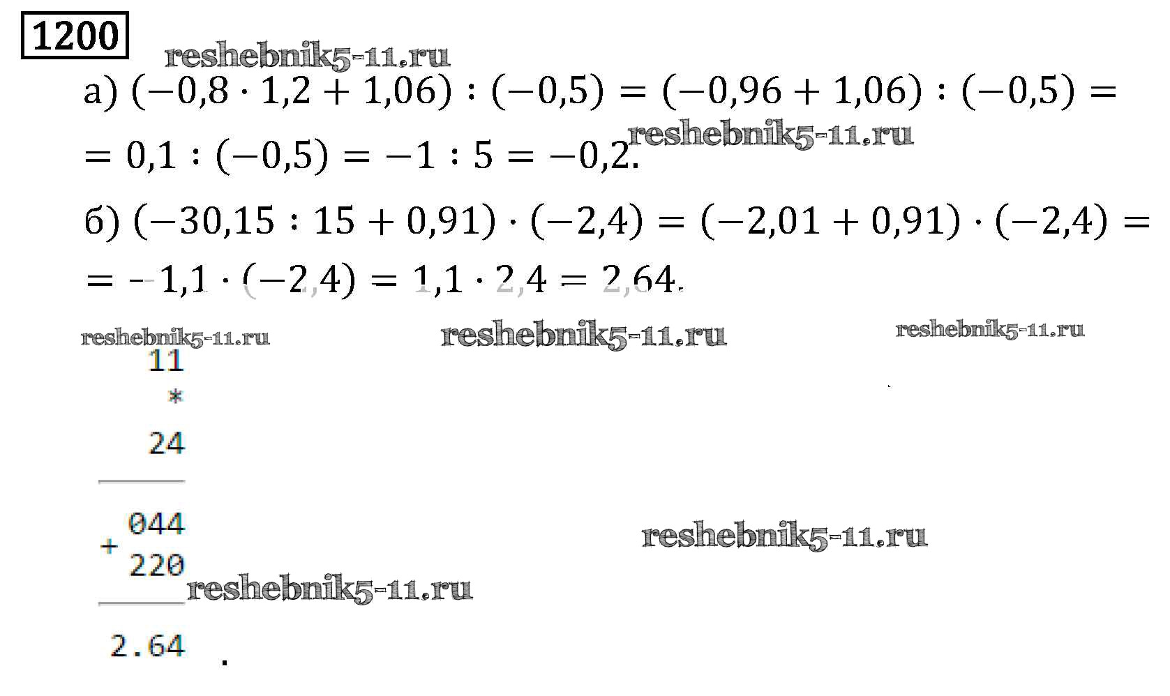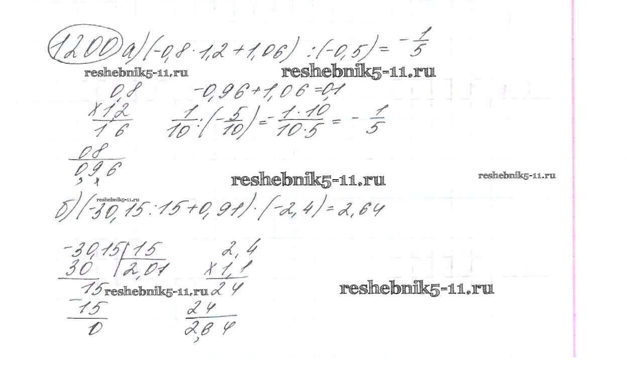 Готовая домашняя работа с ответами по Математике за 6 класс Виленкин, Жохов, Чесноков, Шварцбурд Учебник Мнемозина 2014 ФГОС - §7. Умножение и деление положительных и отрицательных чисел 1200