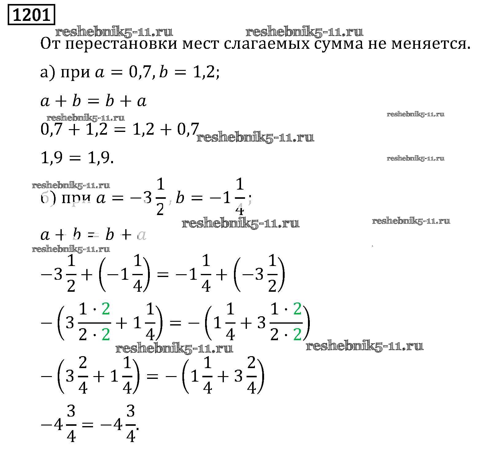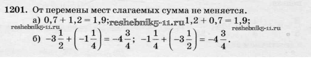 Готовая домашняя работа с ответами по Математике за 6 класс Виленкин, Жохов, Чесноков, Шварцбурд Учебник Мнемозина 2014 ФГОС - §7. Умножение и деление положительных и отрицательных чисел 1201