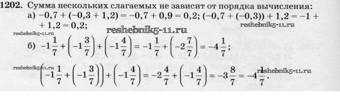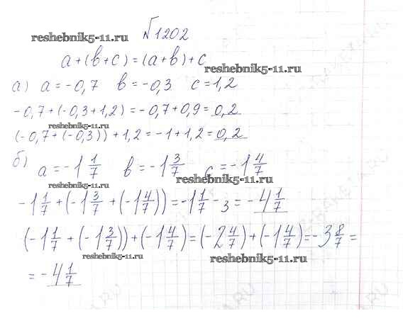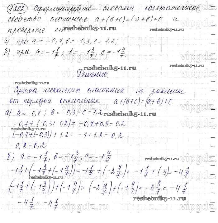 Готовая домашняя работа с ответами по Математике за 6 класс Виленкин, Жохов, Чесноков, Шварцбурд Учебник Мнемозина 2014 ФГОС - §7. Умножение и деление положительных и отрицательных чисел 1202