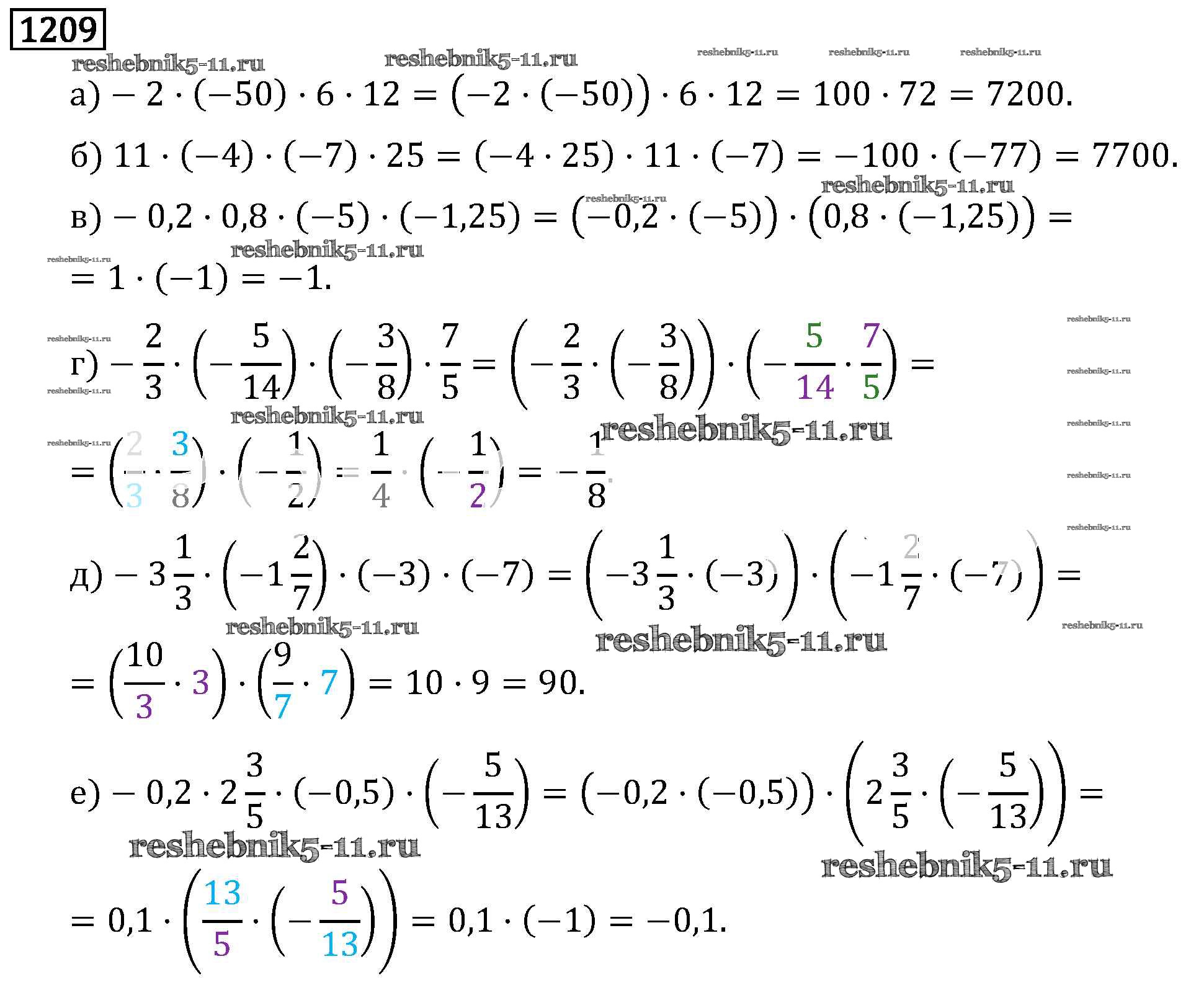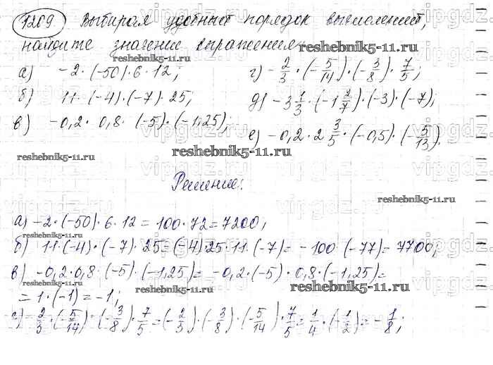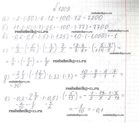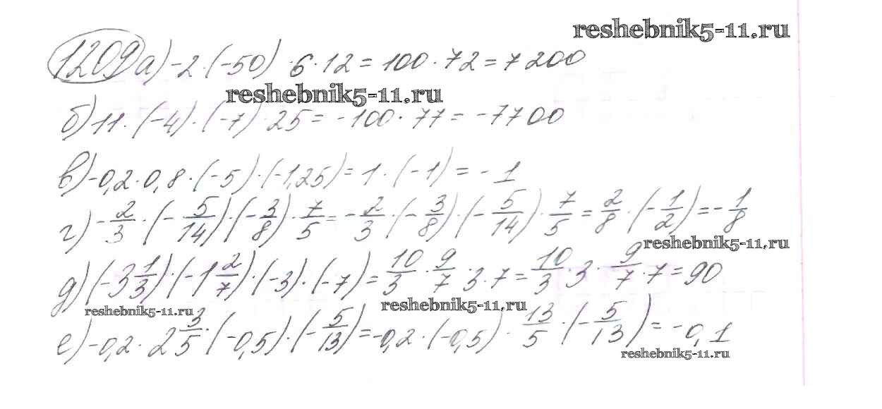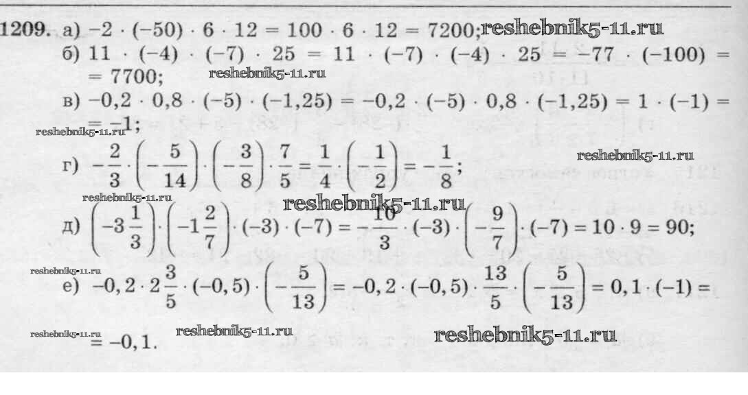 Готовая домашняя работа с ответами по Математике за 6 класс Виленкин, Жохов, Чесноков, Шварцбурд Учебник Мнемозина 2014 ФГОС - §7. Умножение и деление положительных и отрицательных чисел 1209