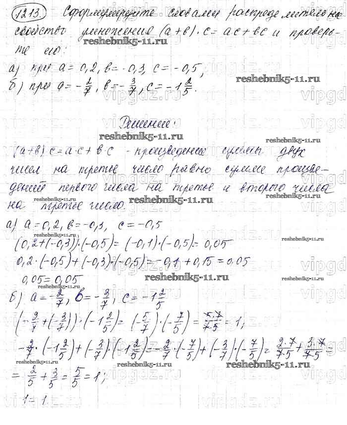 Готовая домашняя работа с ответами по Математике за 6 класс Виленкин, Жохов, Чесноков, Шварцбурд Учебник Мнемозина 2014 ФГОС - §7. Умножение и деление положительных и отрицательных чисел 1213
