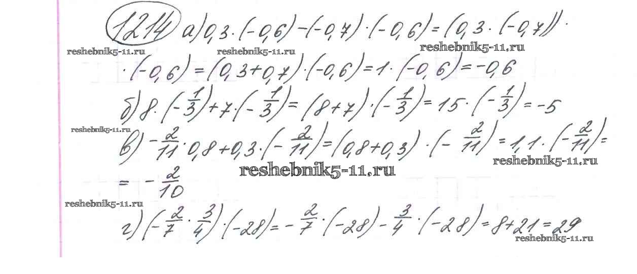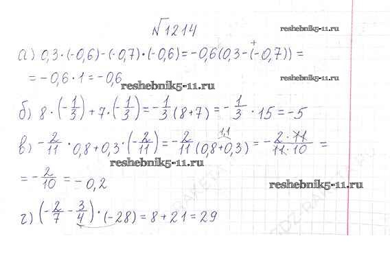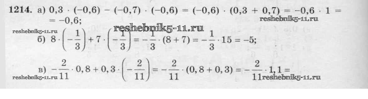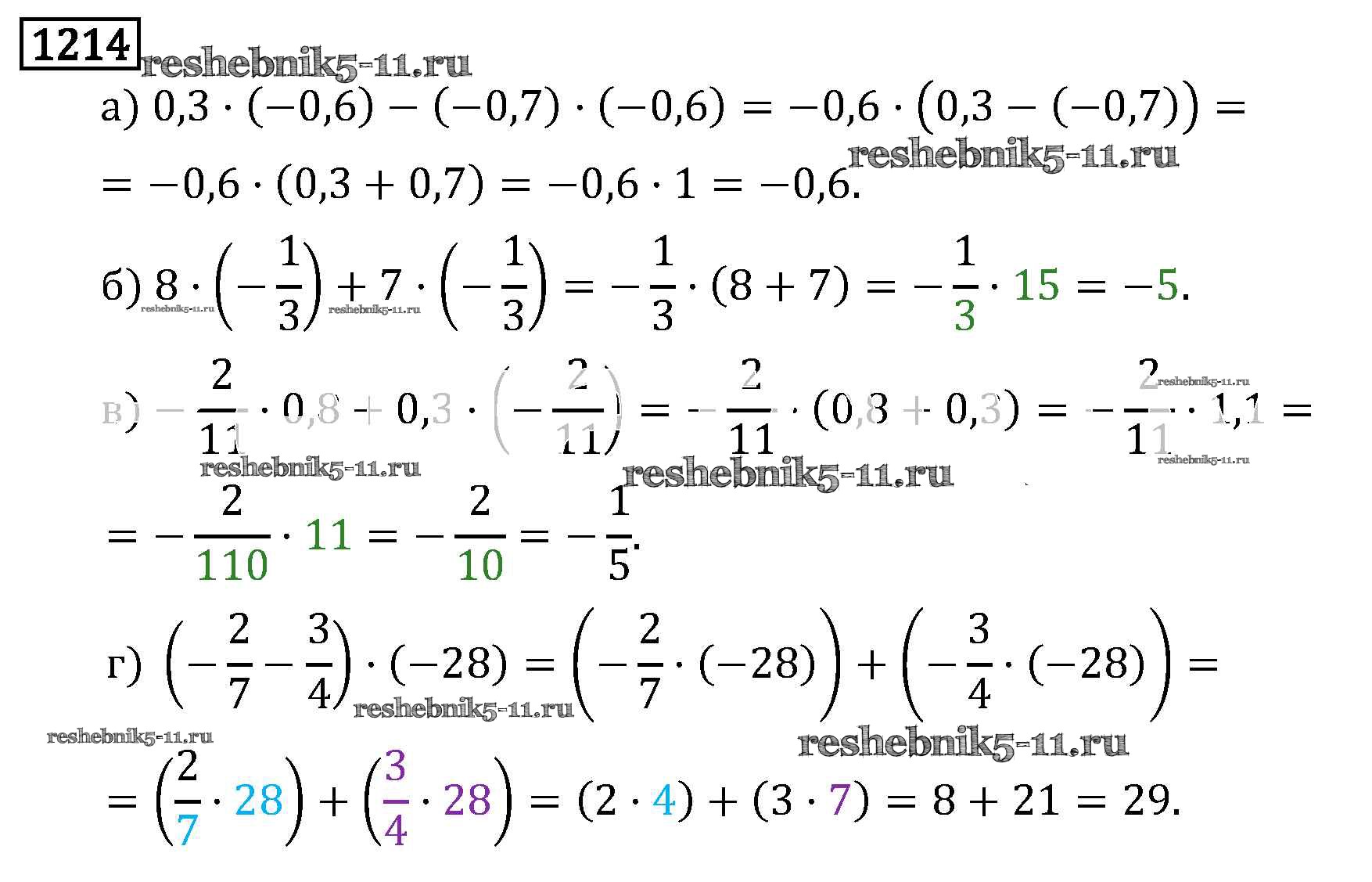 Готовая домашняя работа с ответами по Математике за 6 класс Виленкин, Жохов, Чесноков, Шварцбурд Учебник Мнемозина 2014 ФГОС - §7. Умножение и деление положительных и отрицательных чисел 1214