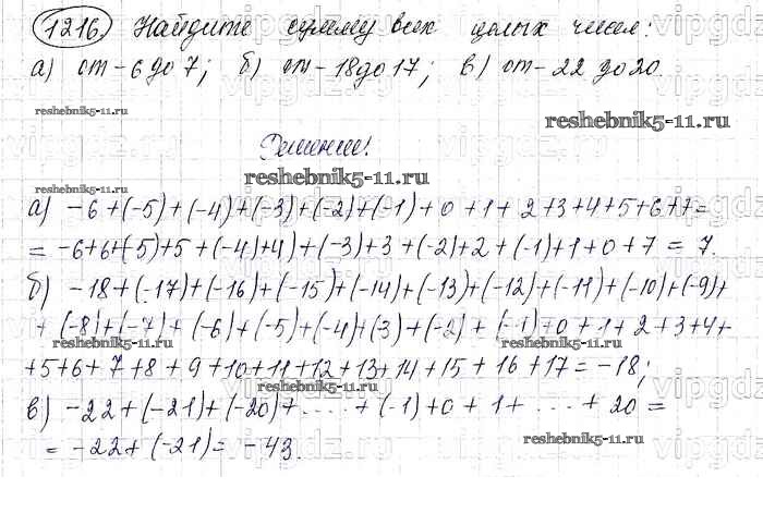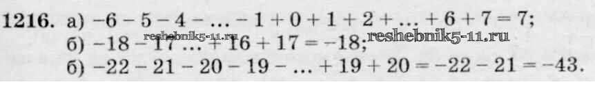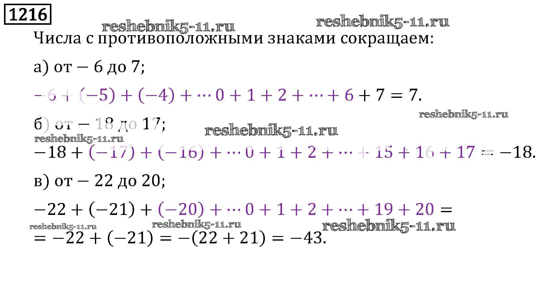 Готовая домашняя работа с ответами по Математике за 6 класс Виленкин, Жохов, Чесноков, Шварцбурд Учебник Мнемозина 2014 ФГОС - §7. Умножение и деление положительных и отрицательных чисел 1216