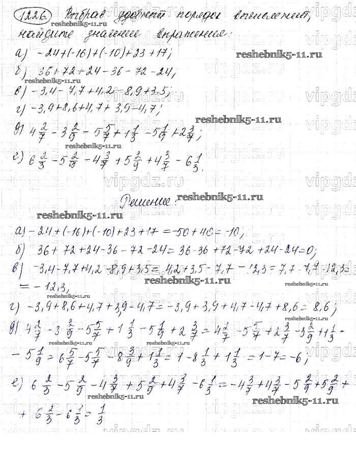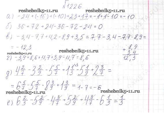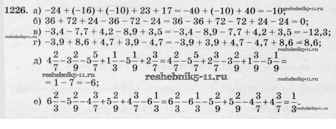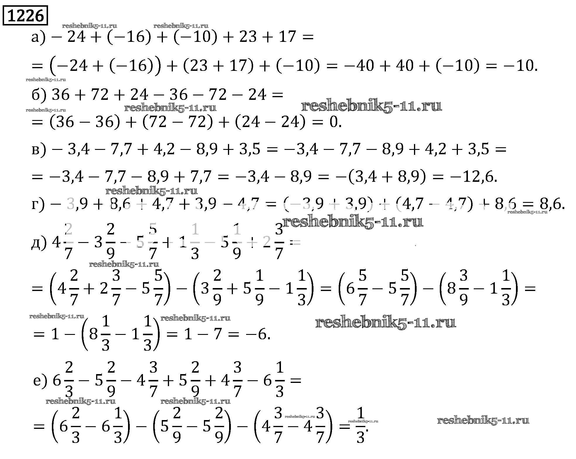 Готовая домашняя работа с ответами по Математике за 6 класс Виленкин, Жохов, Чесноков, Шварцбурд Учебник Мнемозина 2014 ФГОС - §7. Умножение и деление положительных и отрицательных чисел 1226