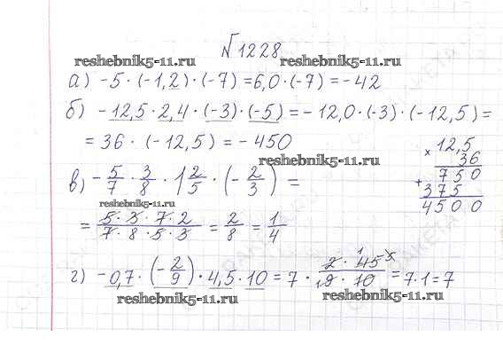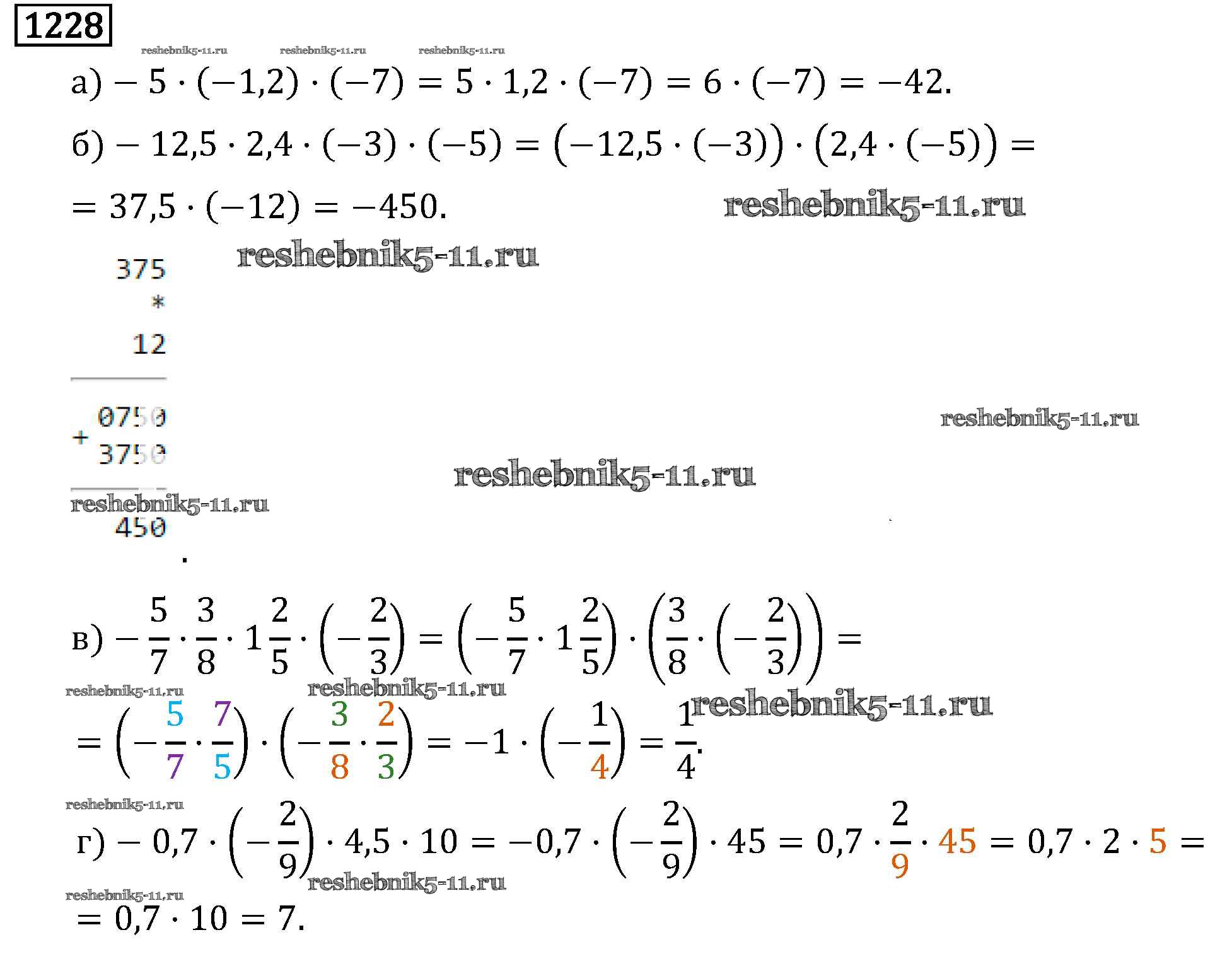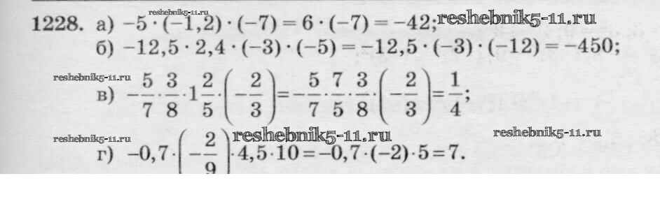 Готовая домашняя работа с ответами по Математике за 6 класс Виленкин, Жохов, Чесноков, Шварцбурд Учебник Мнемозина 2014 ФГОС - §7. Умножение и деление положительных и отрицательных чисел 1228