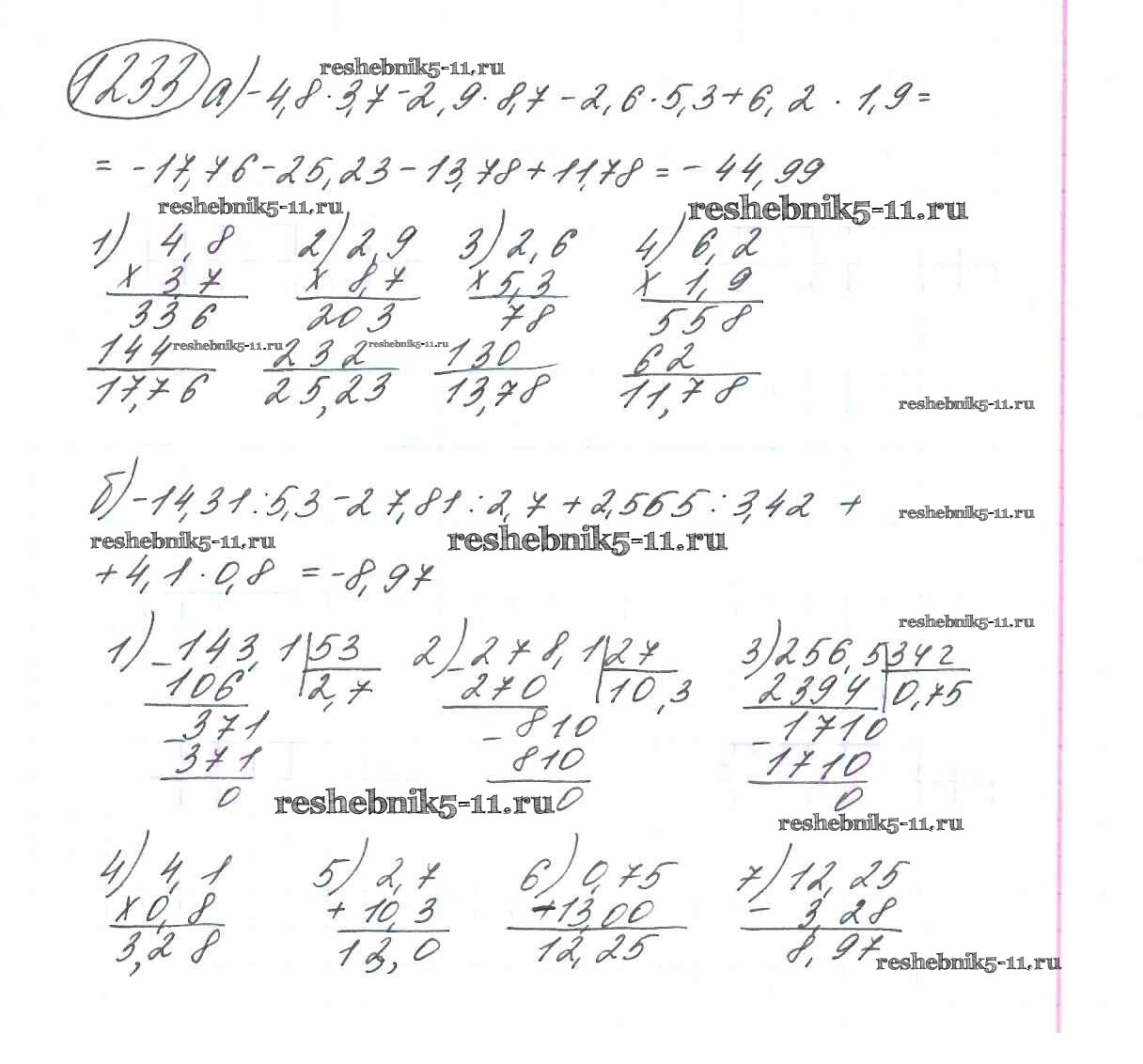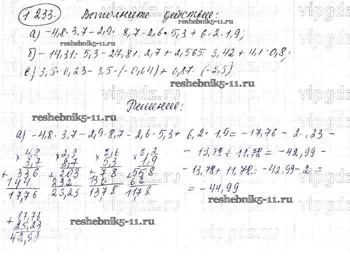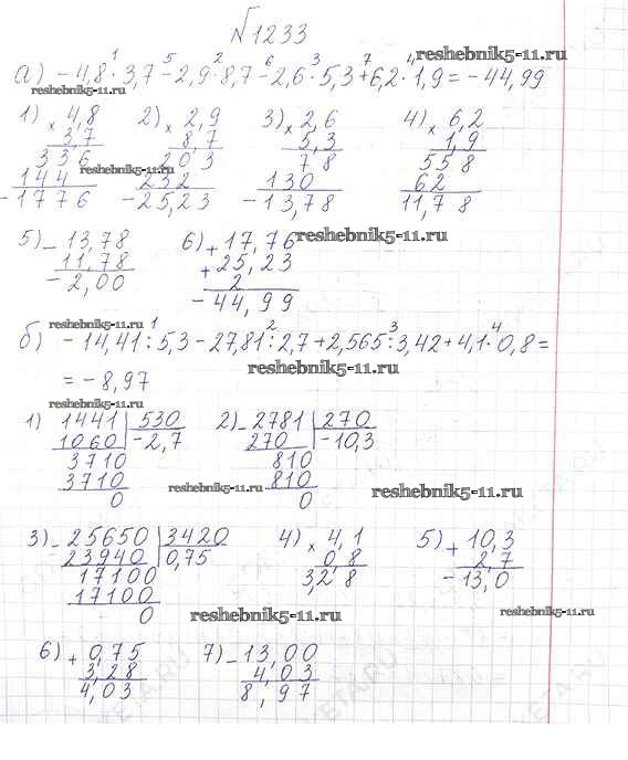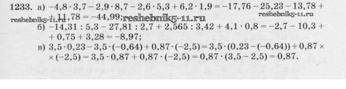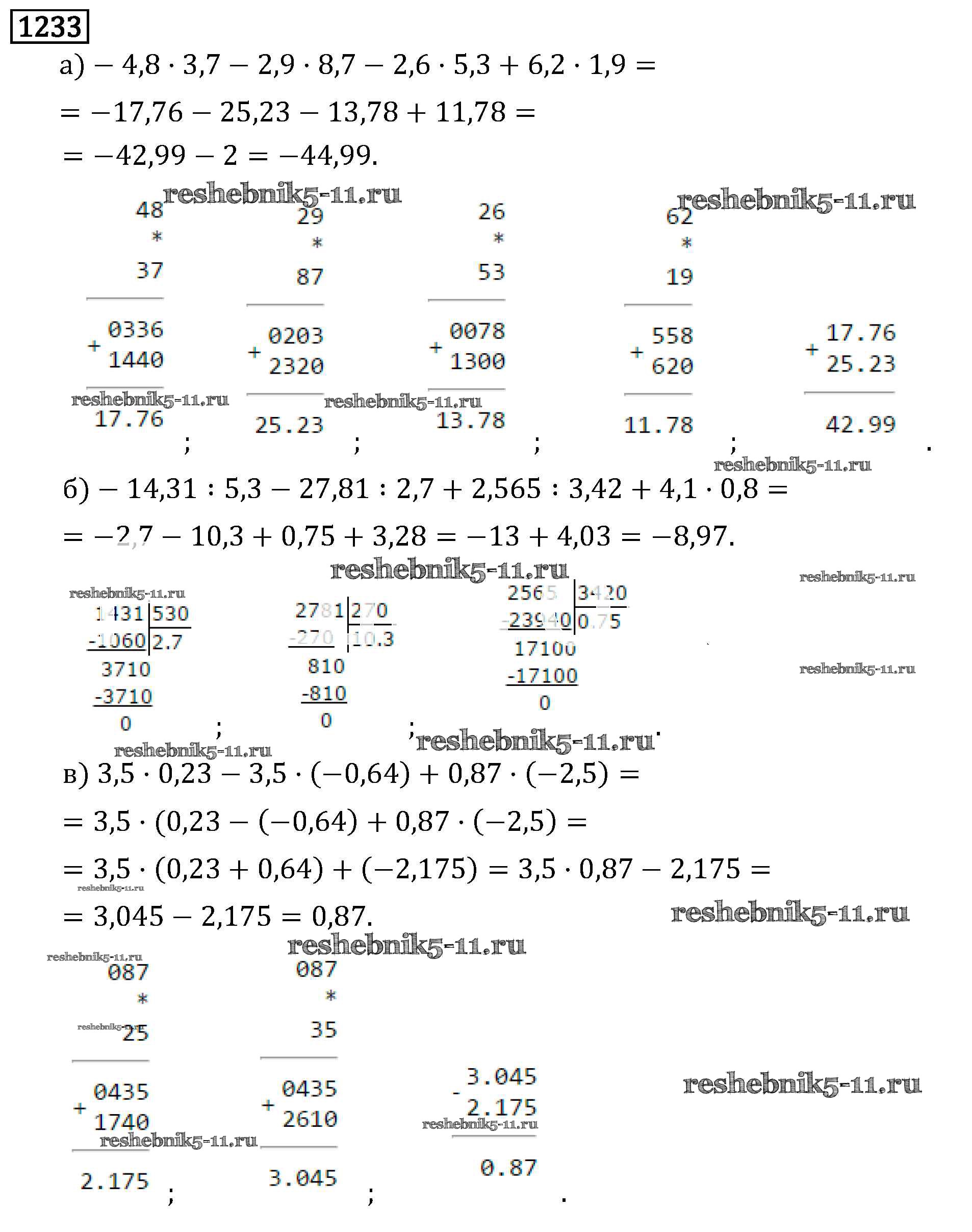 Готовая домашняя работа с ответами по Математике за 6 класс Виленкин, Жохов, Чесноков, Шварцбурд Учебник Мнемозина 2014 ФГОС - §7. Умножение и деление положительных и отрицательных чисел 1233
