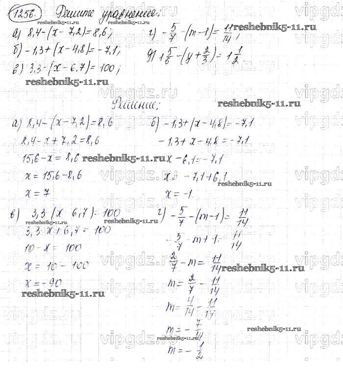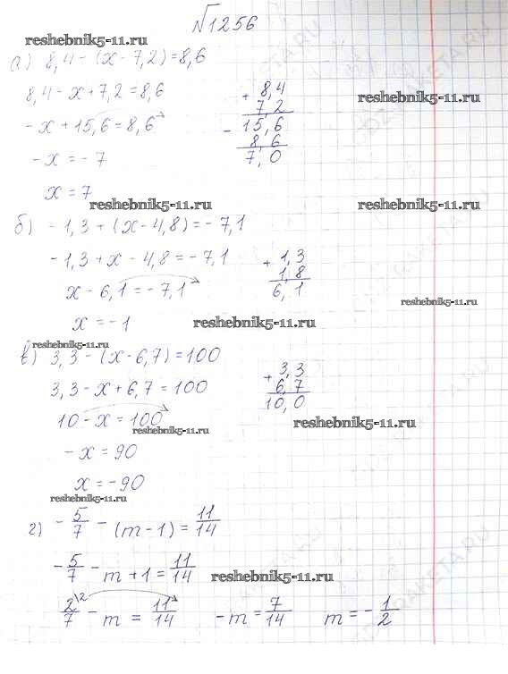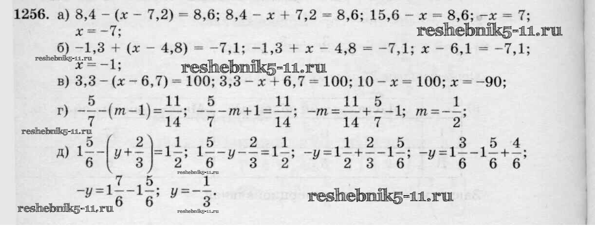 Готовая домашняя работа с ответами по Математике за 6 класс Виленкин, Жохов, Чесноков, Шварцбурд Учебник Мнемозина 2014 ФГОС - §8. Решение уравнений 1256