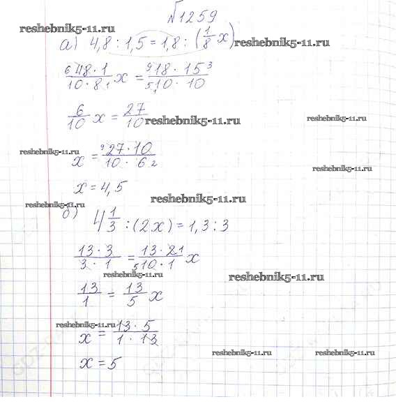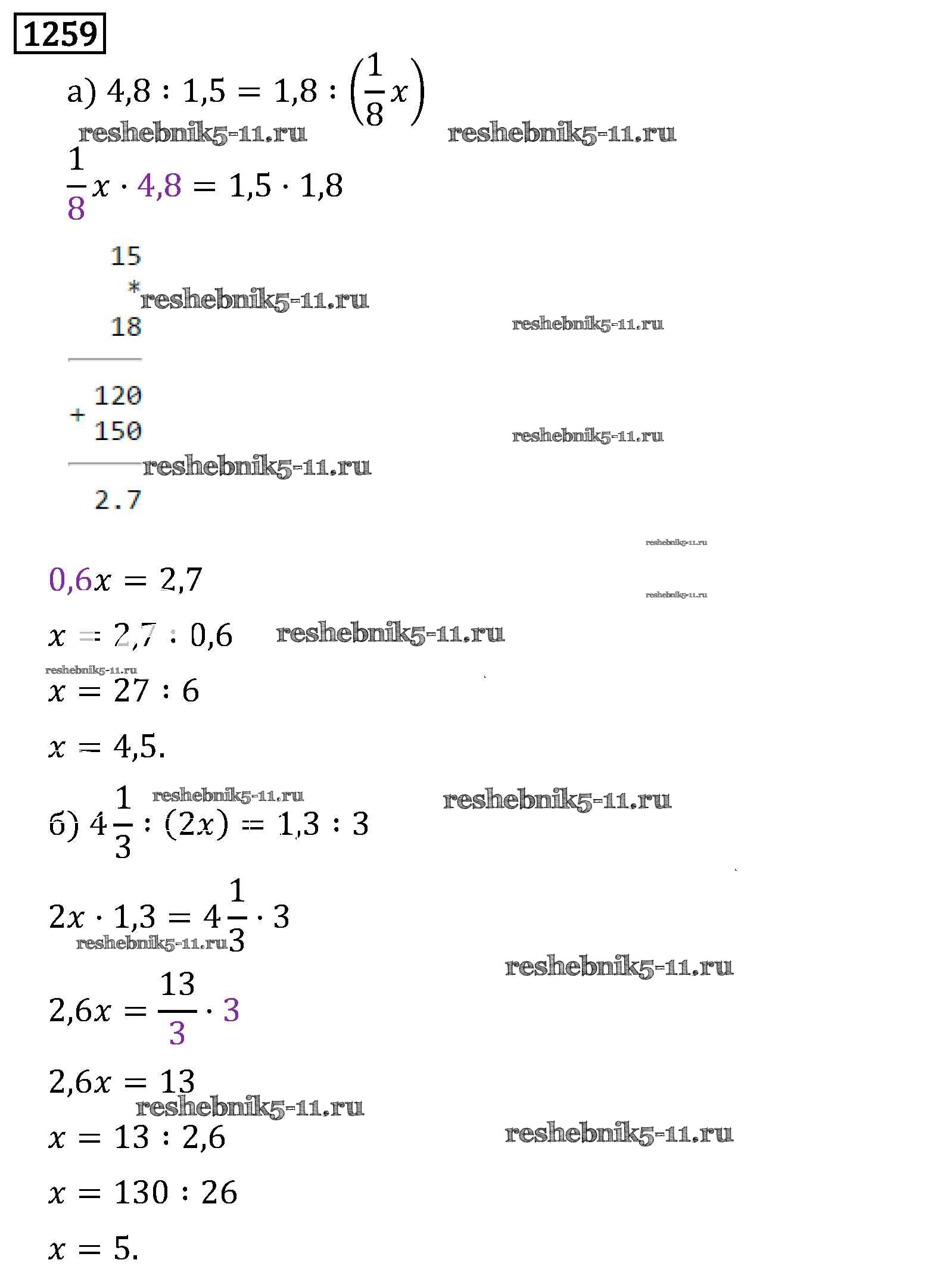 Готовая домашняя работа с ответами по Математике за 6 класс Виленкин, Жохов, Чесноков, Шварцбурд Учебник Мнемозина 2014 ФГОС - §8. Решение уравнений 1259