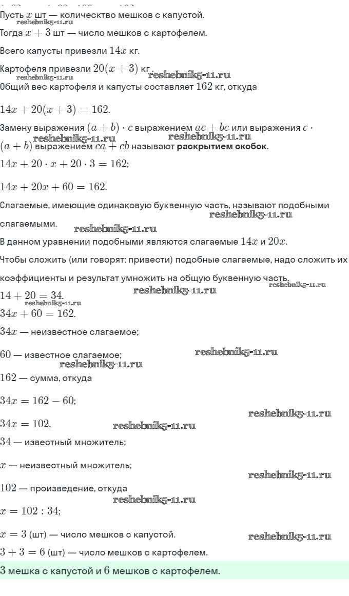 Готовая домашняя работа с ответами по Математике за 6 класс Виленкин, Жохов, Чесноков, Шварцбурд Учебник Мнемозина 2014 ФГОС - §8. Решение уравнений 1288