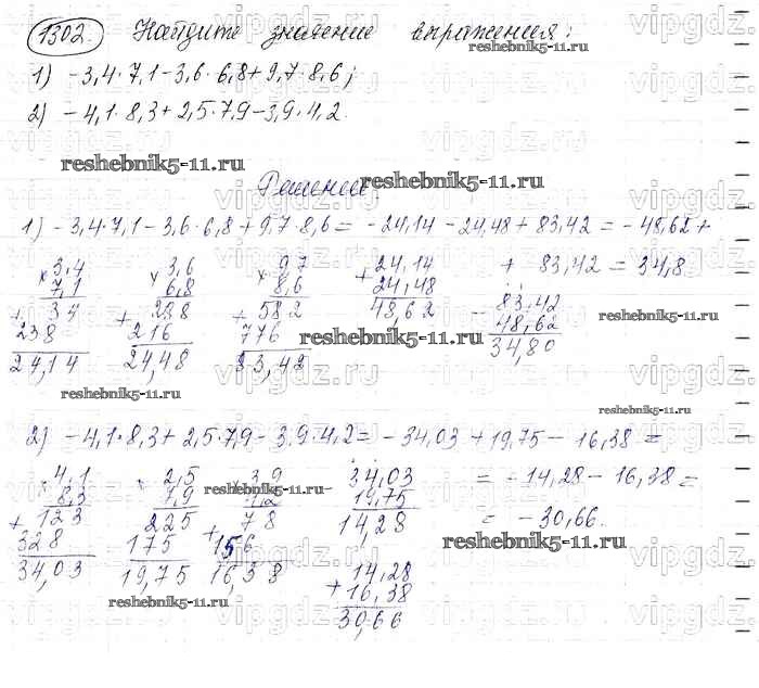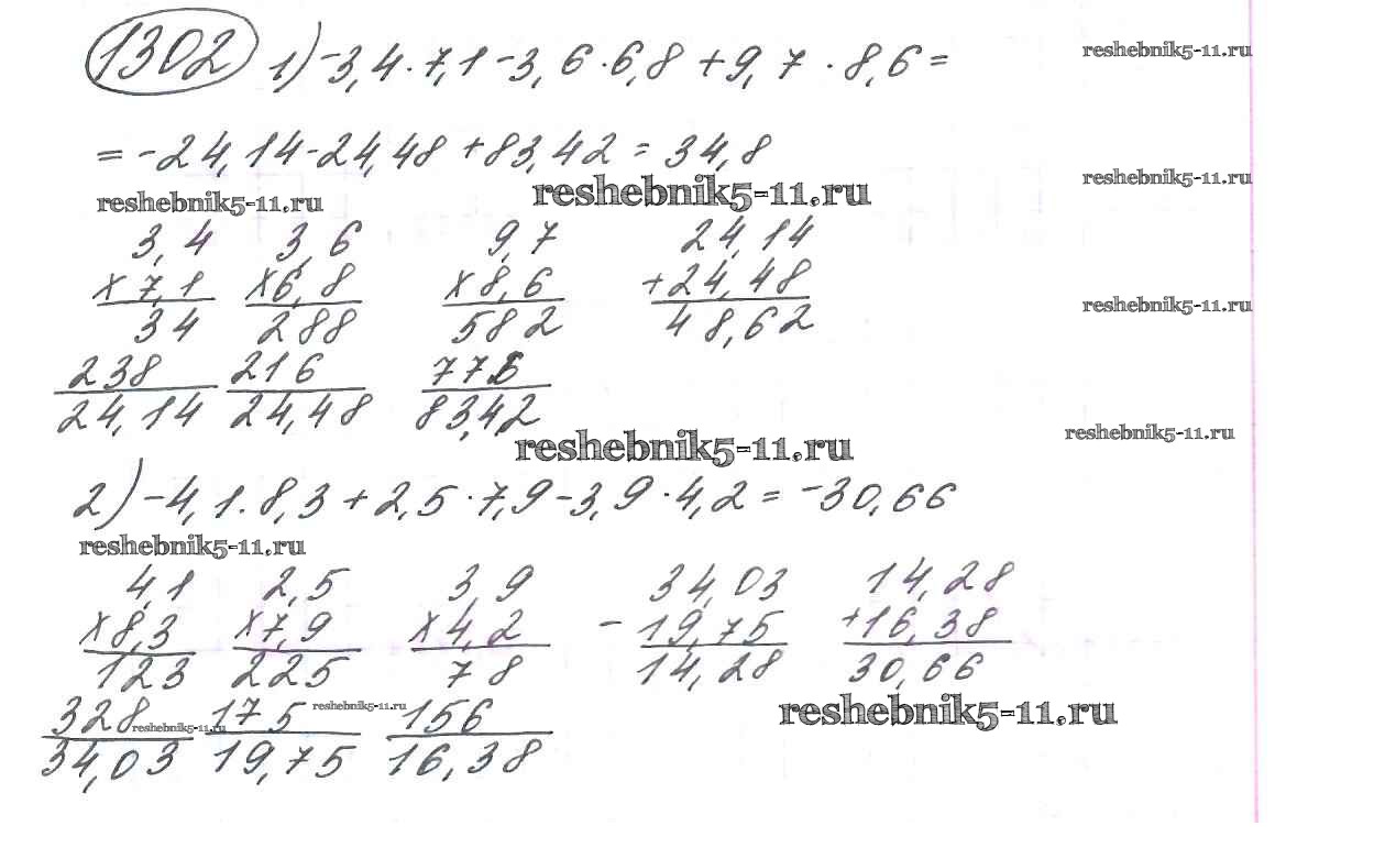 Готовая домашняя работа с ответами по Математике за 6 класс Виленкин, Жохов, Чесноков, Шварцбурд Учебник Мнемозина 2014 ФГОС - §8. Решение уравнений 1302