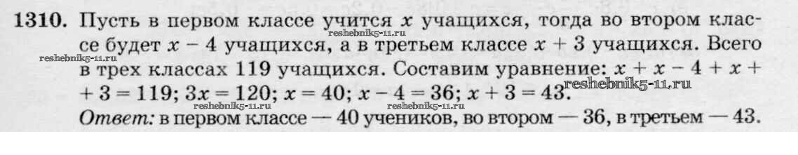 Готовая домашняя работа с ответами по Математике за 6 класс Виленкин, Жохов, Чесноков, Шварцбурд Учебник Мнемозина 2014 ФГОС - §8. Решение уравнений 1310