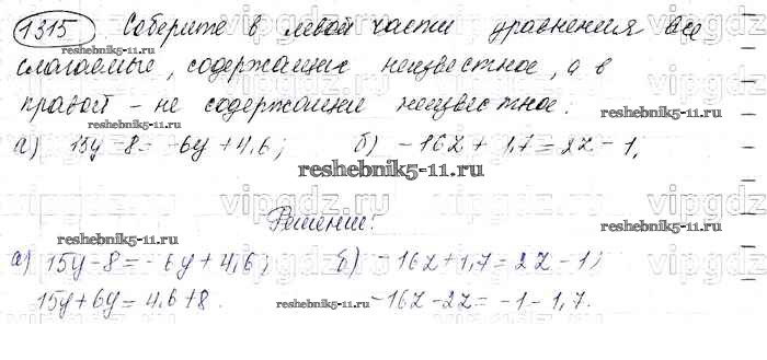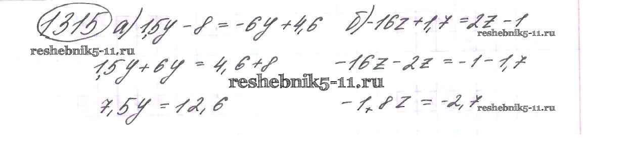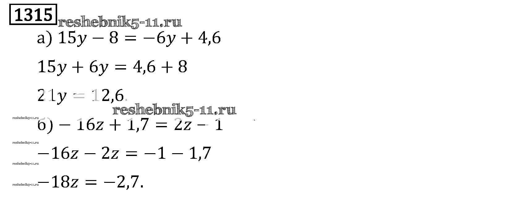 Готовая домашняя работа с ответами по Математике за 6 класс Виленкин, Жохов, Чесноков, Шварцбурд Учебник Мнемозина 2014 ФГОС - §8. Решение уравнений 1315