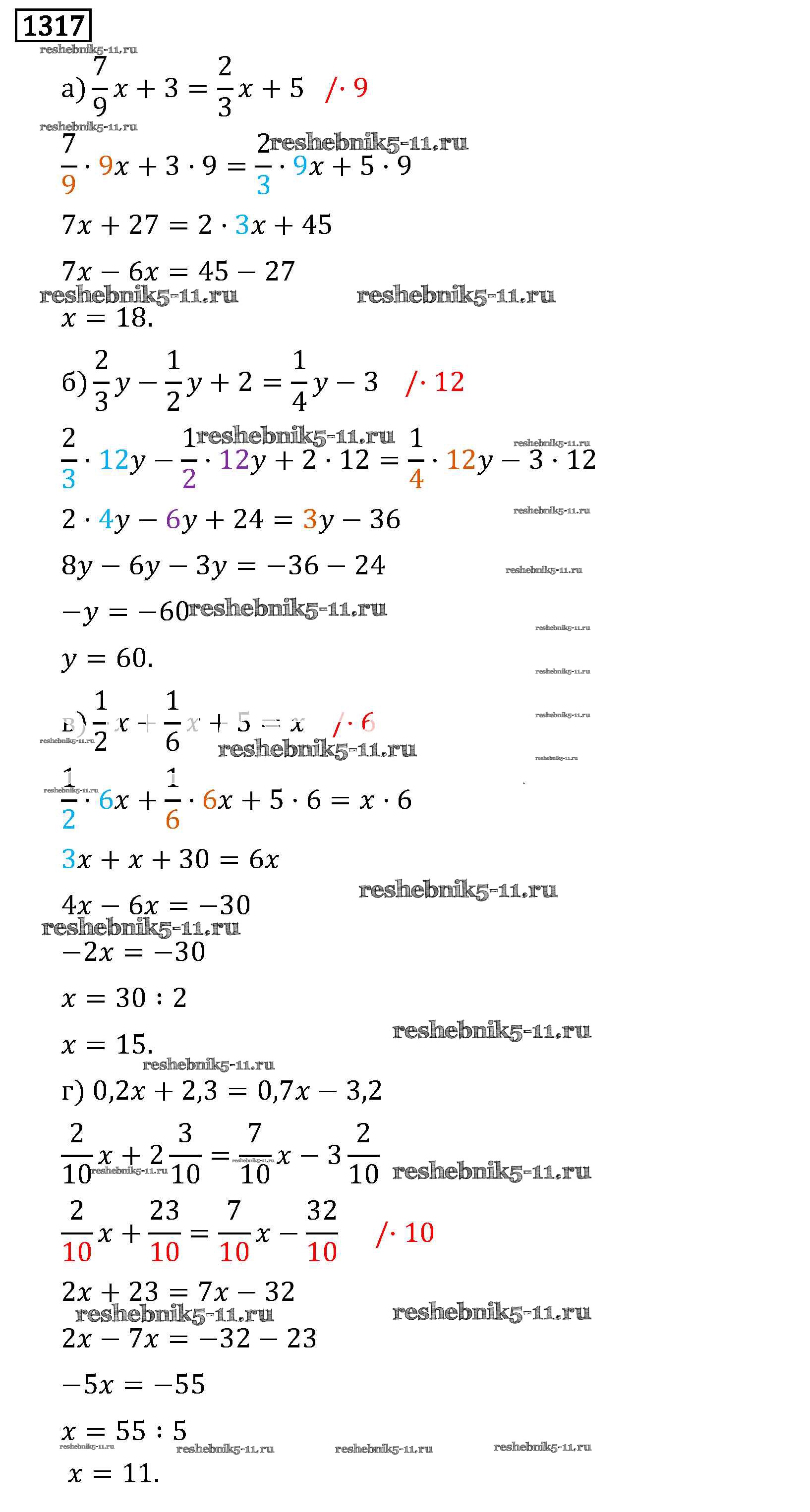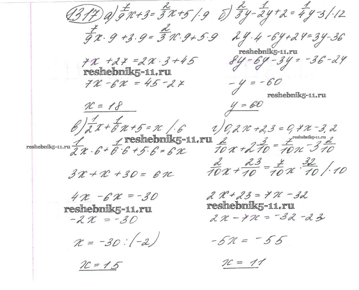 Готовая домашняя работа с ответами по Математике за 6 класс Виленкин, Жохов, Чесноков, Шварцбурд Учебник Мнемозина 2014 ФГОС - §8. Решение уравнений 1317