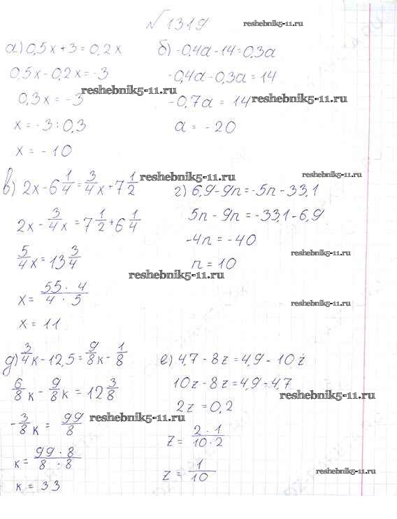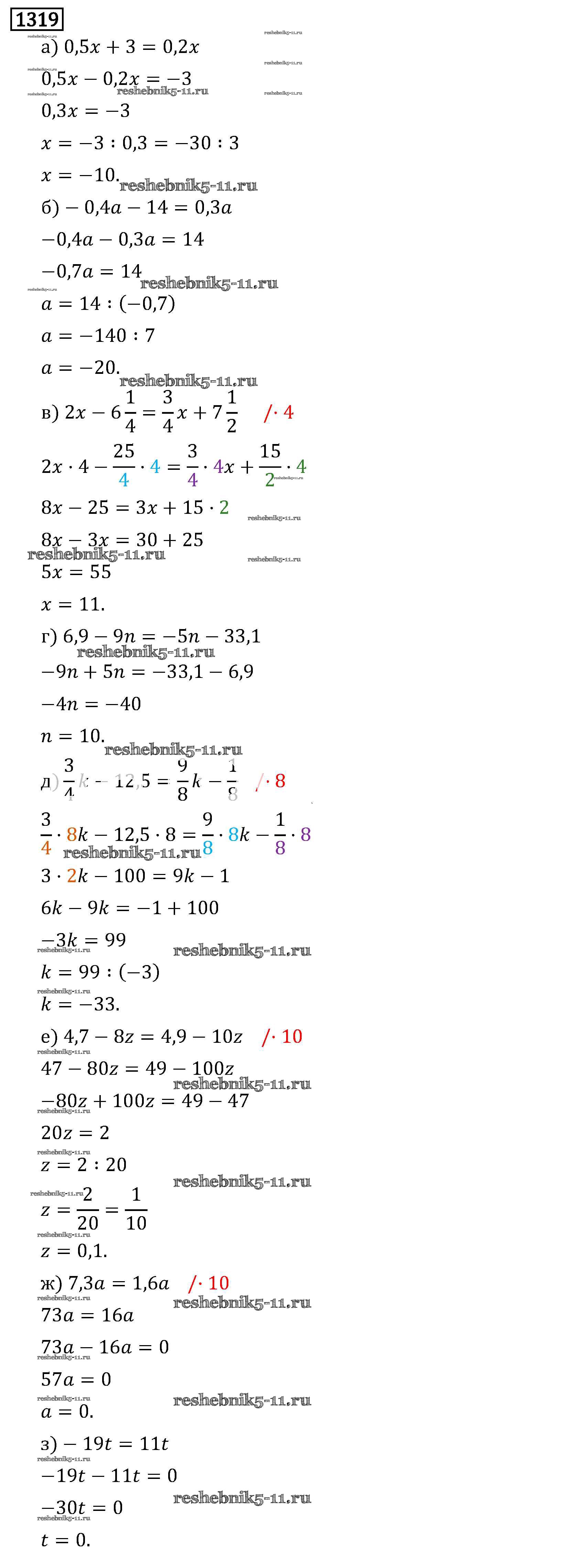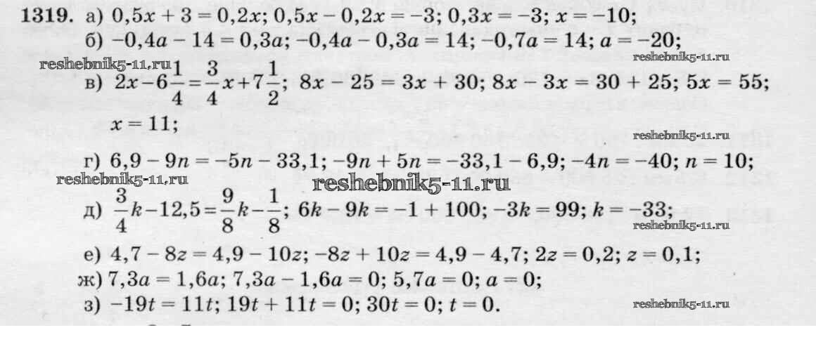 Готовая домашняя работа с ответами по Математике за 6 класс Виленкин, Жохов, Чесноков, Шварцбурд Учебник Мнемозина 2014 ФГОС - §8. Решение уравнений 1319