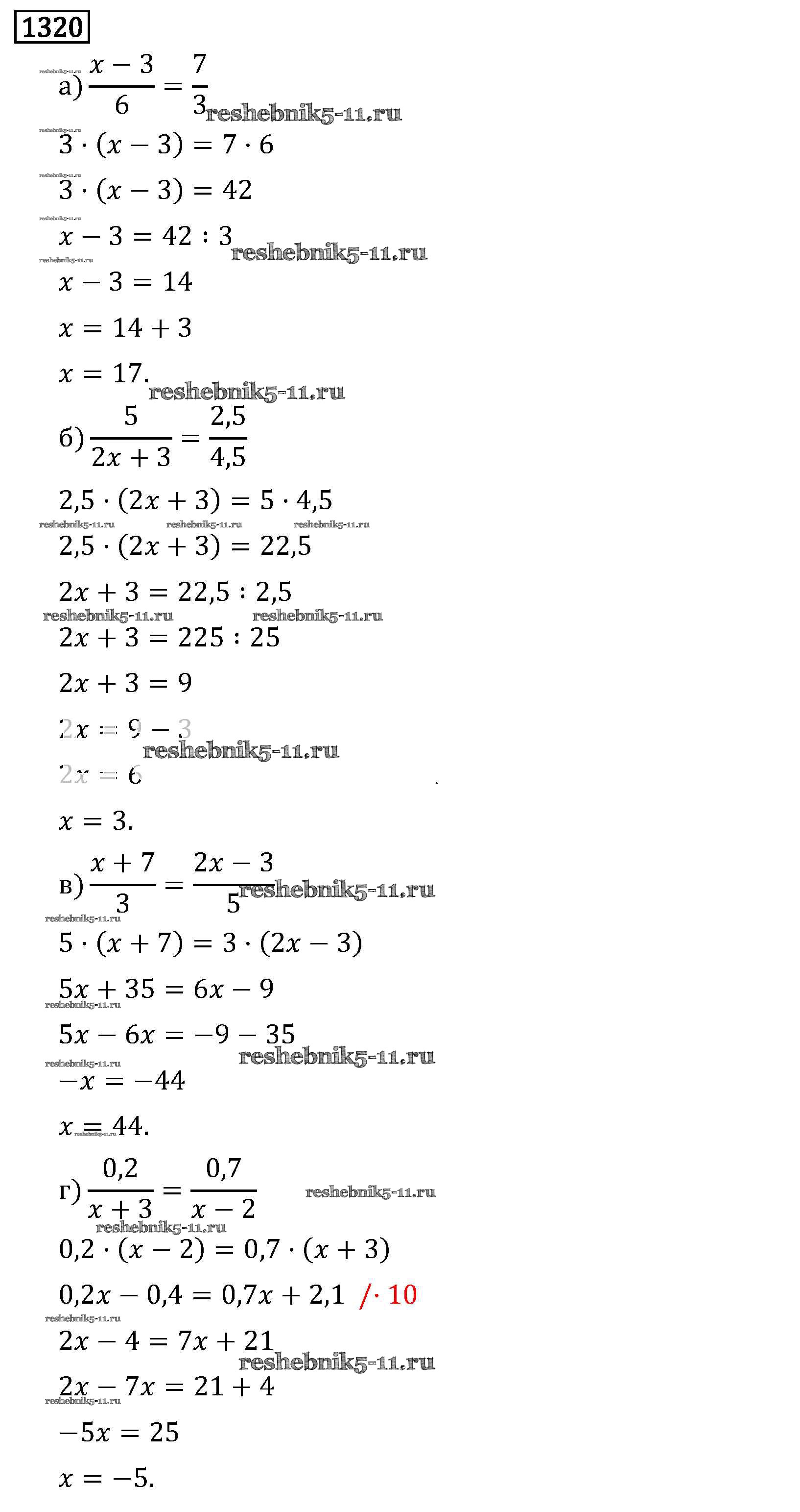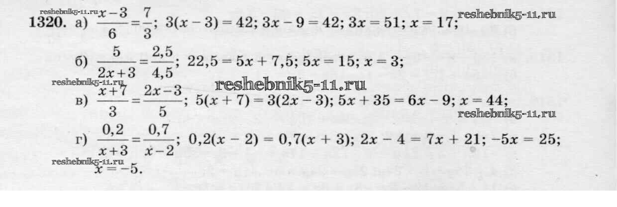 Готовая домашняя работа с ответами по Математике за 6 класс Виленкин, Жохов, Чесноков, Шварцбурд Учебник Мнемозина 2014 ФГОС - §8. Решение уравнений 1320