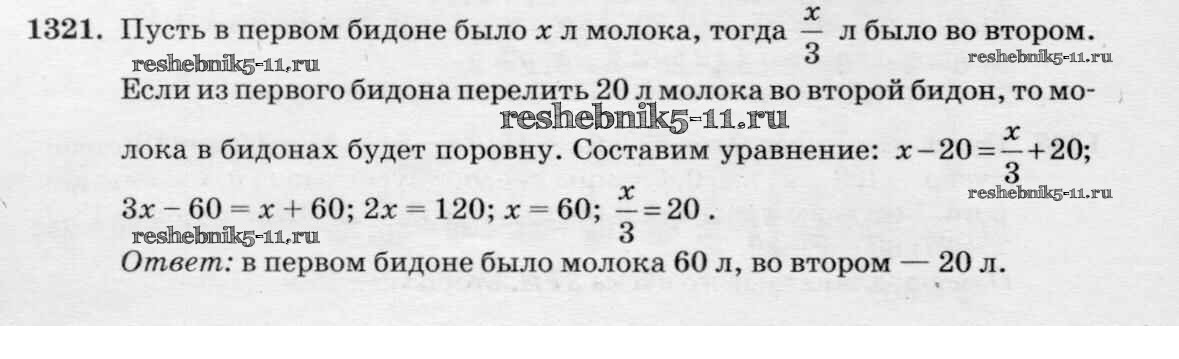 Готовая домашняя работа с ответами по Математике за 6 класс Виленкин, Жохов, Чесноков, Шварцбурд Учебник Мнемозина 2014 ФГОС - §8. Решение уравнений 1321