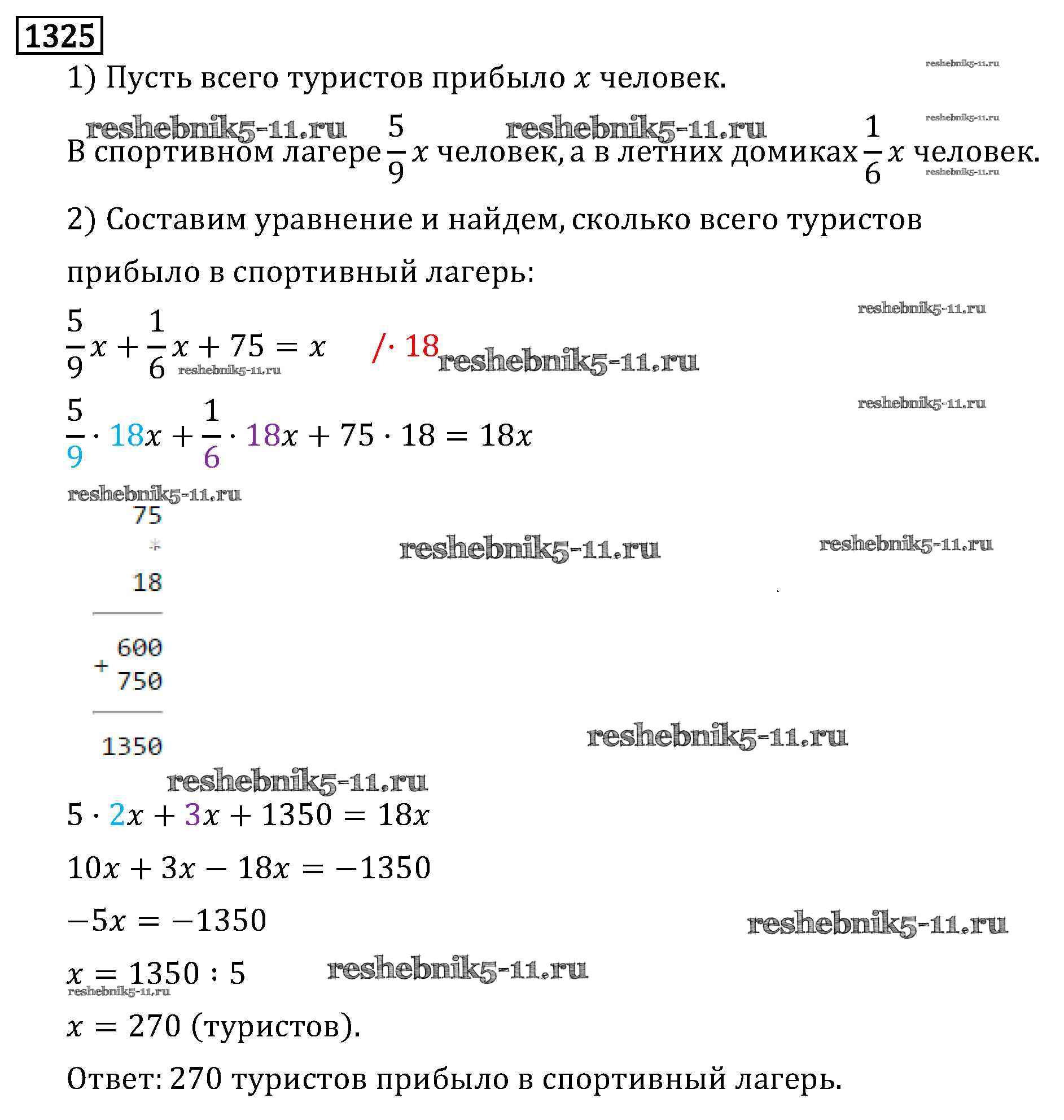 Готовая домашняя работа с ответами по Математике за 6 класс Виленкин, Жохов, Чесноков, Шварцбурд Учебник Мнемозина 2014 ФГОС - §8. Решение уравнений 1325